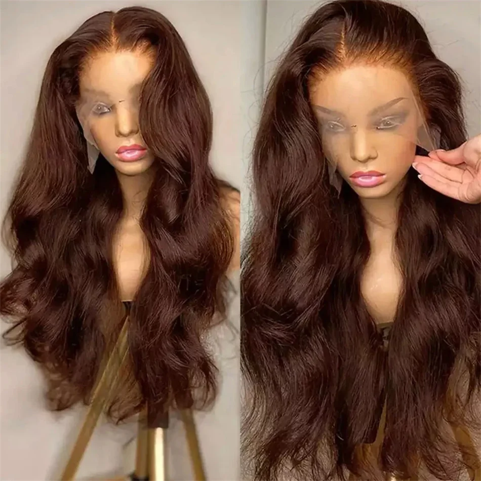 13x6 Chocolate Brown Body Wave Lace Front Wig HD Transparent Lace Frontal Wig Human Hair Preplucked Colored Human Hair Wigs 180%