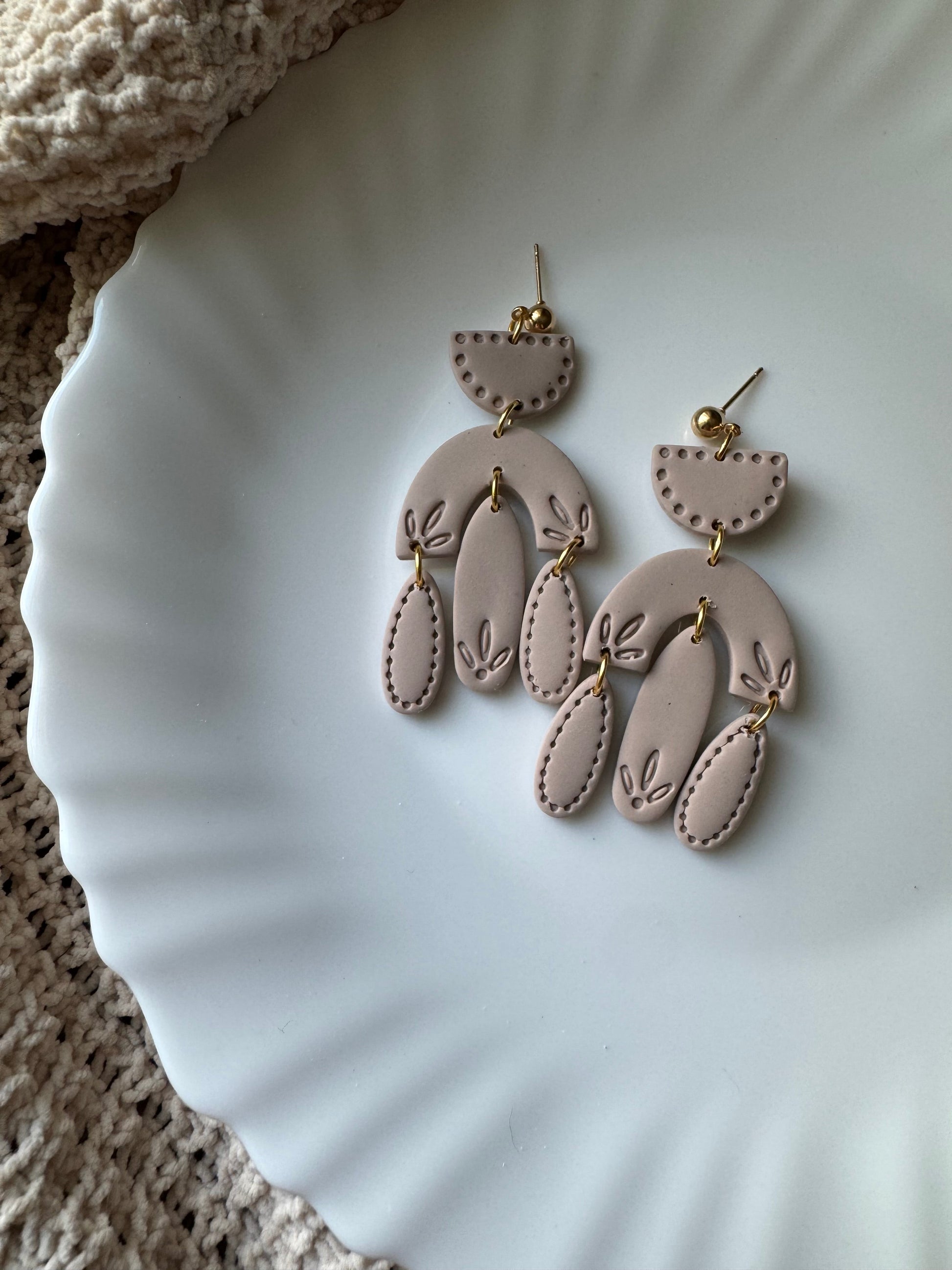 Earrings are made of polymer clay and hardware is 14k gold plated - nickel free. Each piece is rolled, cut, baked, sanded and assembled by hand, so sizes and custom-mixed colors will vary per piece. Due to the handmade nature of my pieces, slight imperfections are inevitable. Every piece is truly one of a kind.