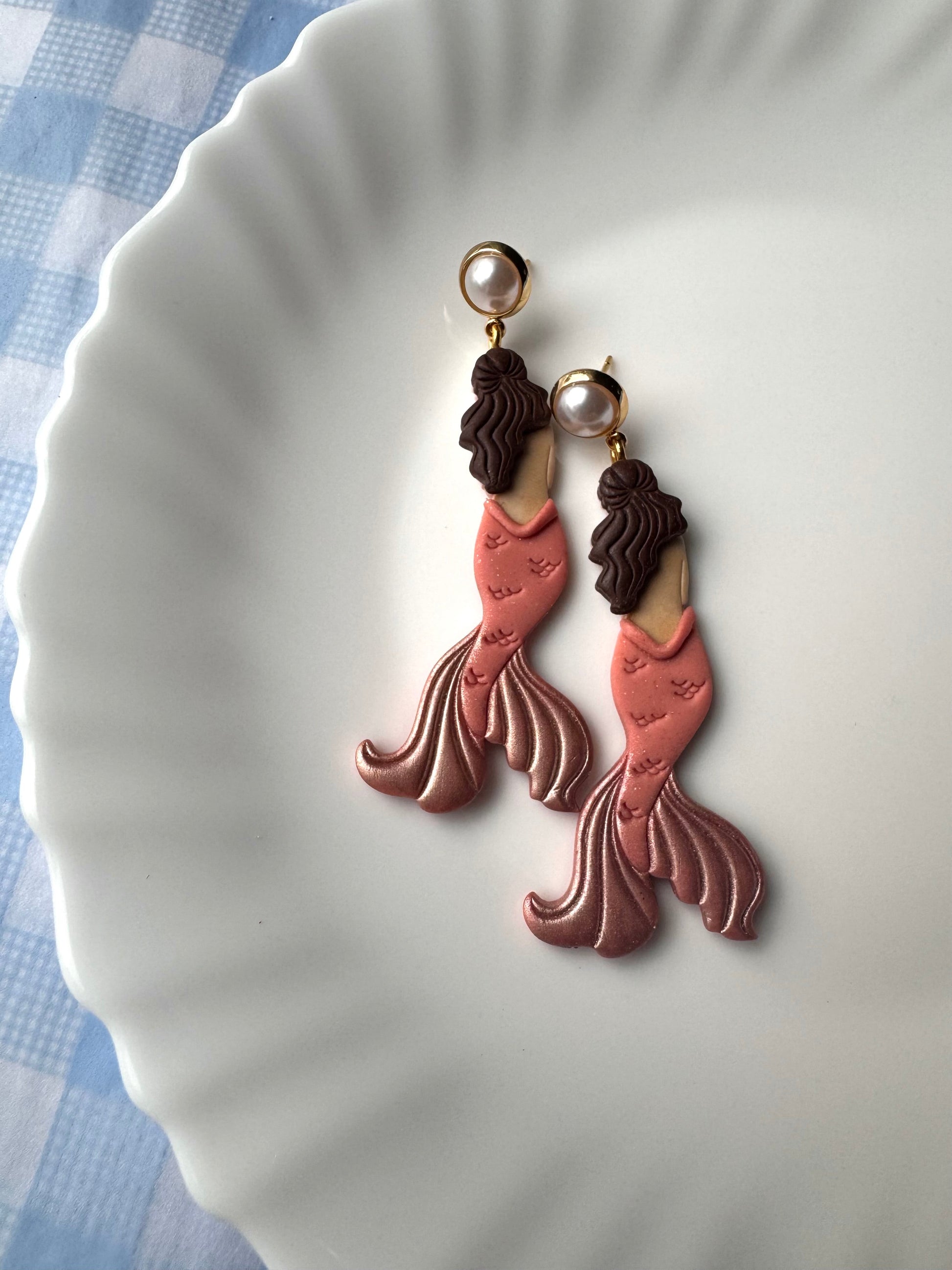 Earrings are made of polymer clay and hardware is 14k gold plated - nickel free. Each piece is rolled, cut, baked, sanded and assembled by hand, so sizes and custom-mixed colors will vary per piece. Due to the handmade nature of my pieces, slight imperfections are inevitable. Every piece is truly one of a kind.
