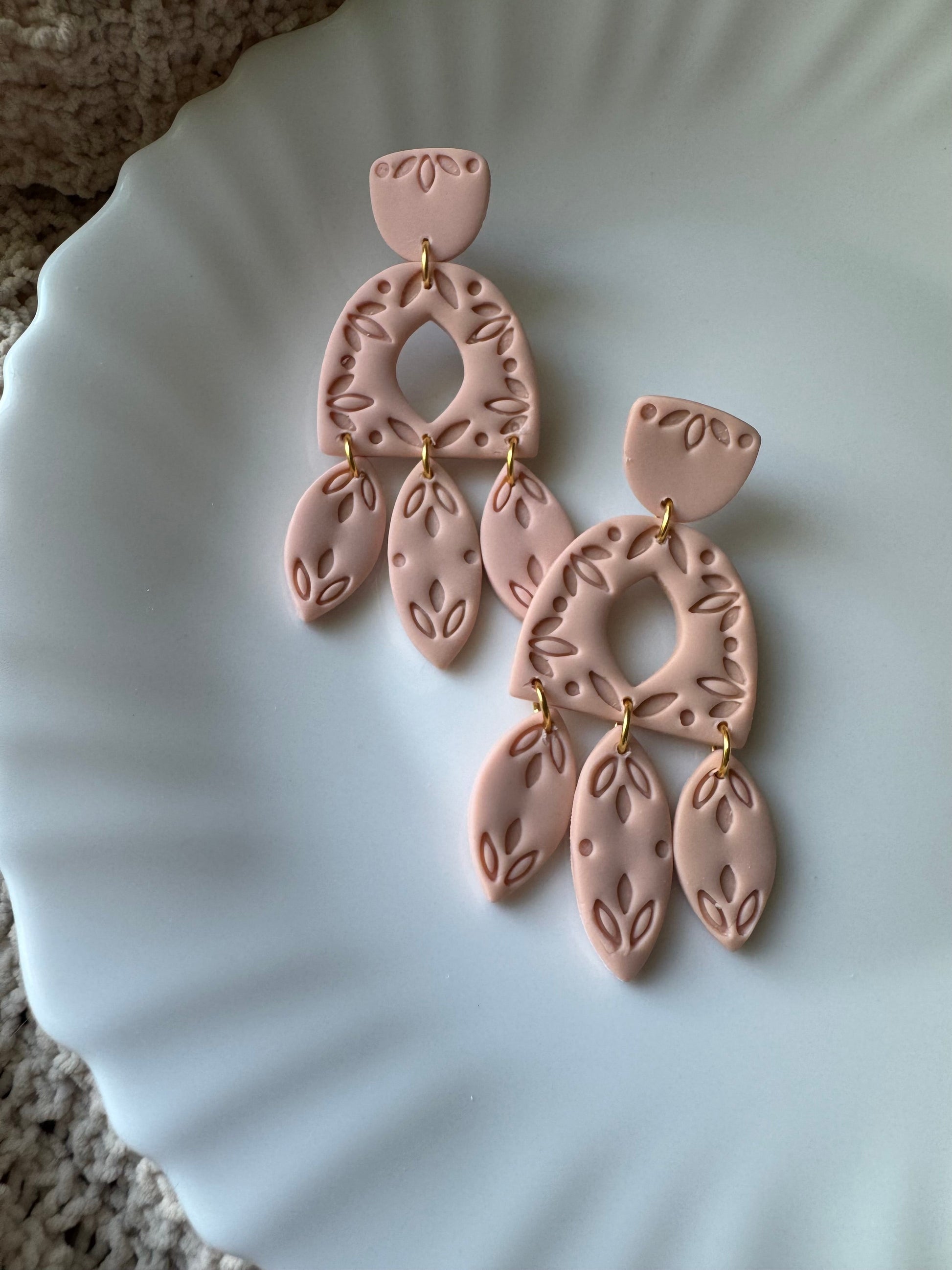 Earrings are made of polymer clay and hardware is surgical grade steel - nickel free. Each piece is rolled, cut, baked, sanded and assembled by hand, so sizes and custom-mixed colors will vary per piece. Due to the handmade nature of my pieces, slight imperfections are inevitable. Every piece is truly one of a kind.