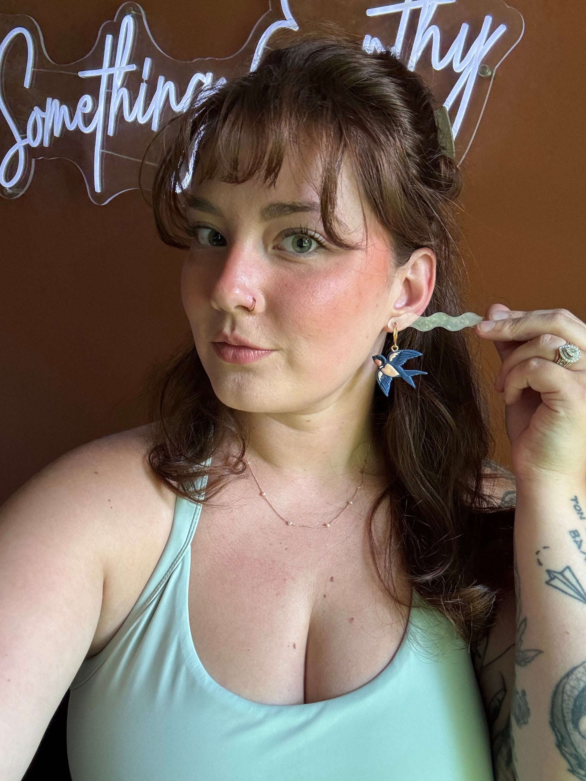 Earrings are made of polymer clay and hardware is 14k gold plated - nickel free. Each piece is rolled, cut, baked, sanded and assembled by hand, so sizes and custom-mixed colors will vary per piece. Due to the handmade nature of my pieces, slight imperfections are inevitable. Every piece is truly one of a kind.