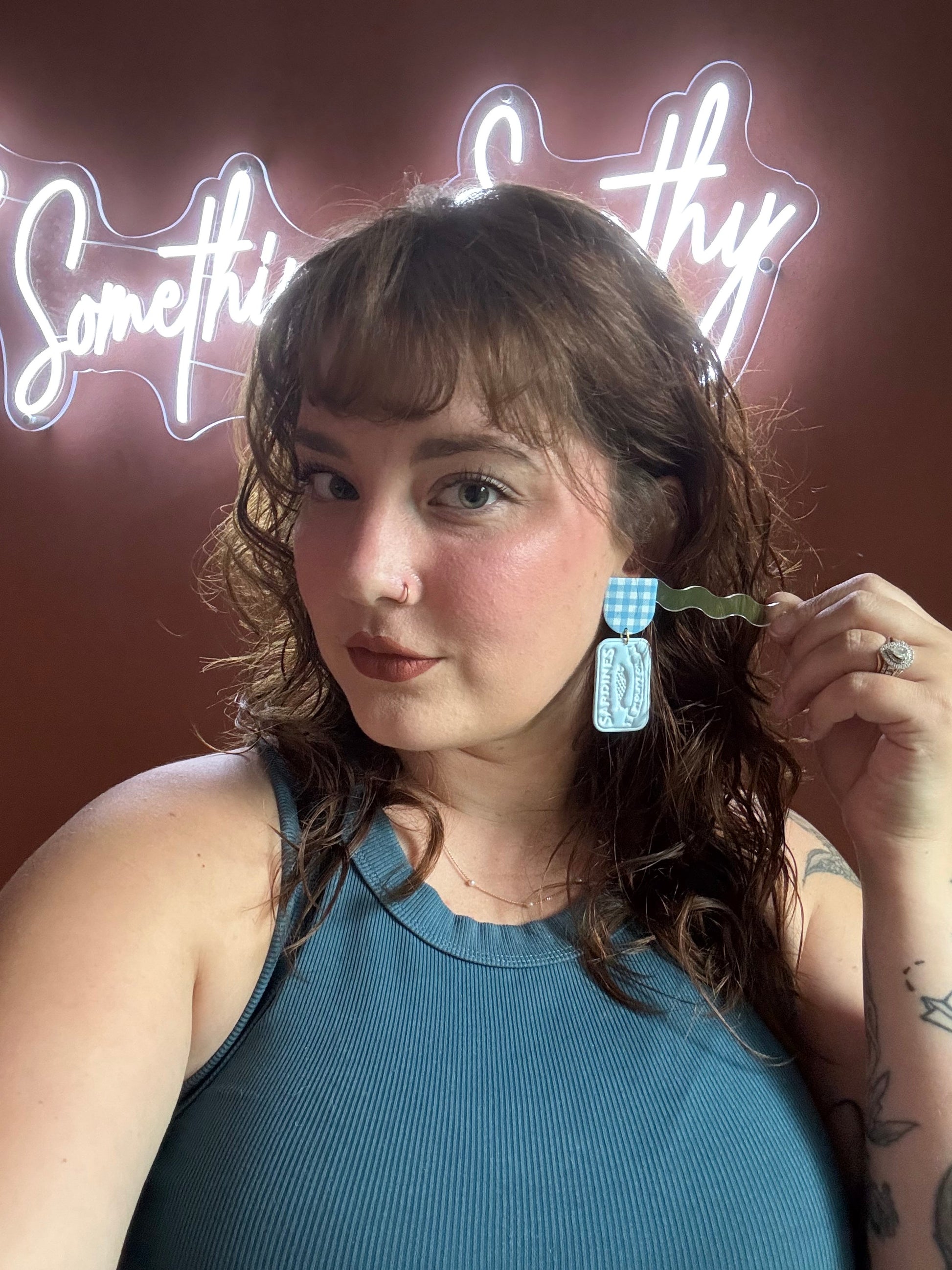 Earrings are made of polymer clay and hardware is surgical grade steel - nickel free. Each piece is rolled, cut, baked, sanded and assembled by hand, so sizes and custom-mixed colors will vary per piece. Due to the handmade nature of my pieces, slight imperfections are inevitable. Every piece is truly one of a kind.