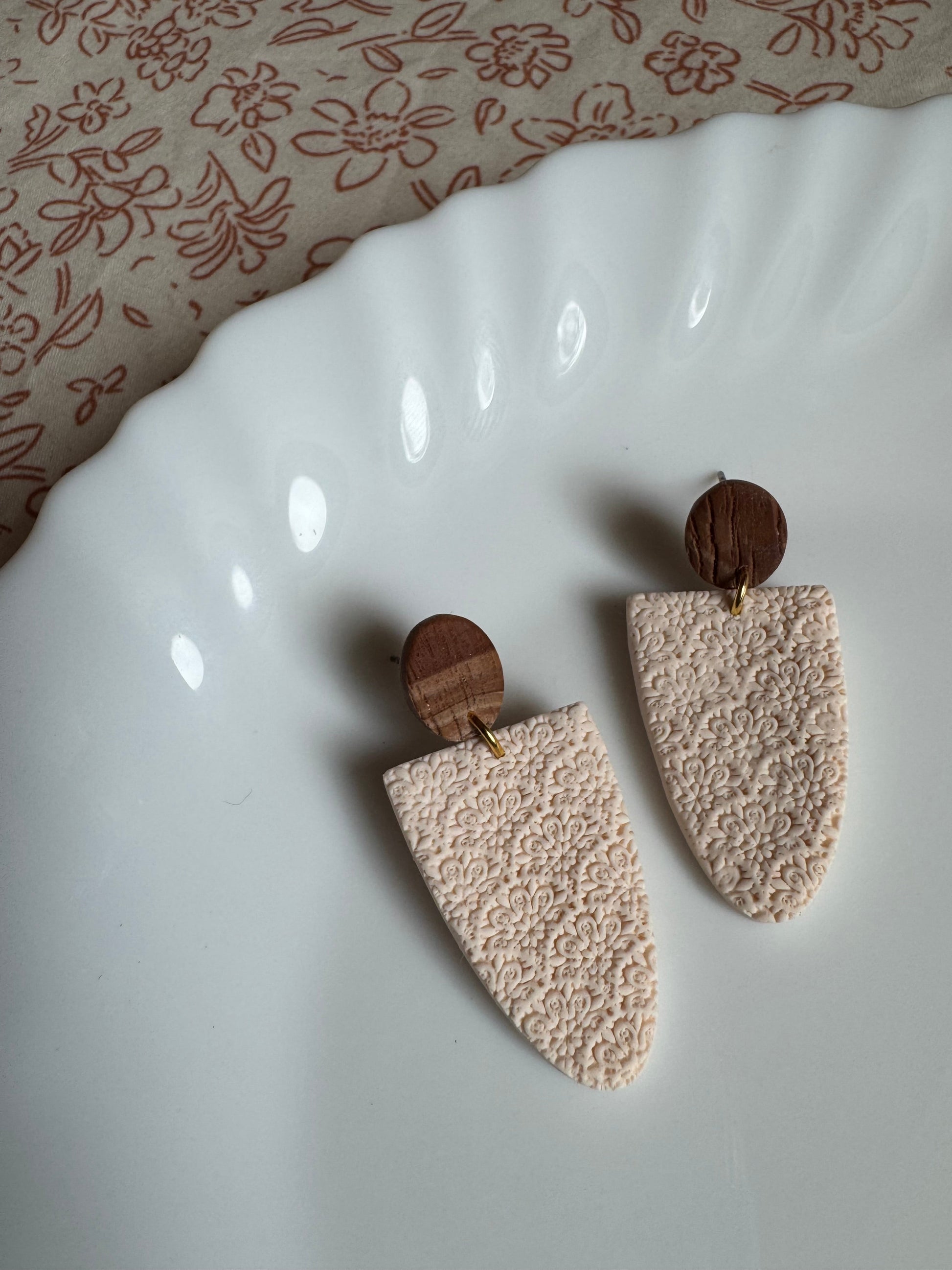 Earrings are made of polymer clay and hardware is surgical grade steel - nickel free. Each piece is rolled, cut, baked, sanded and assembled by hand, so sizes and custom-mixed colors will vary per piece. Due to the handmade nature of my pieces, slight imperfections are inevitable. Every piece is truly one of a kind.