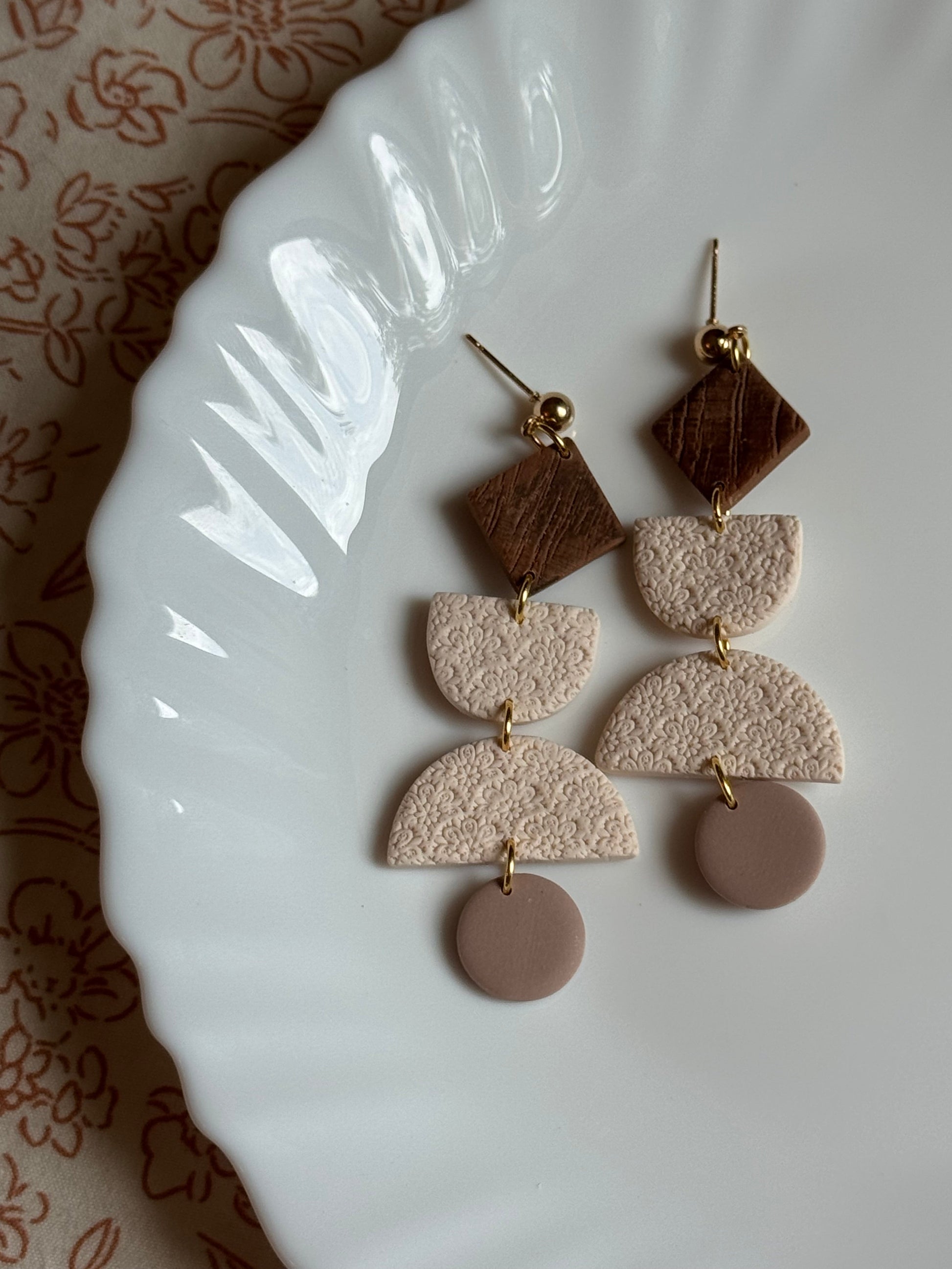 Earrings are made of polymer clay and hardware is 14k gold plated - nickel free. Each piece is rolled, cut, baked, sanded and assembled by hand, so sizes and custom-mixed colors will vary per piece. Due to the handmade nature of my pieces, slight imperfections are inevitable. Every piece is truly one of a kind.