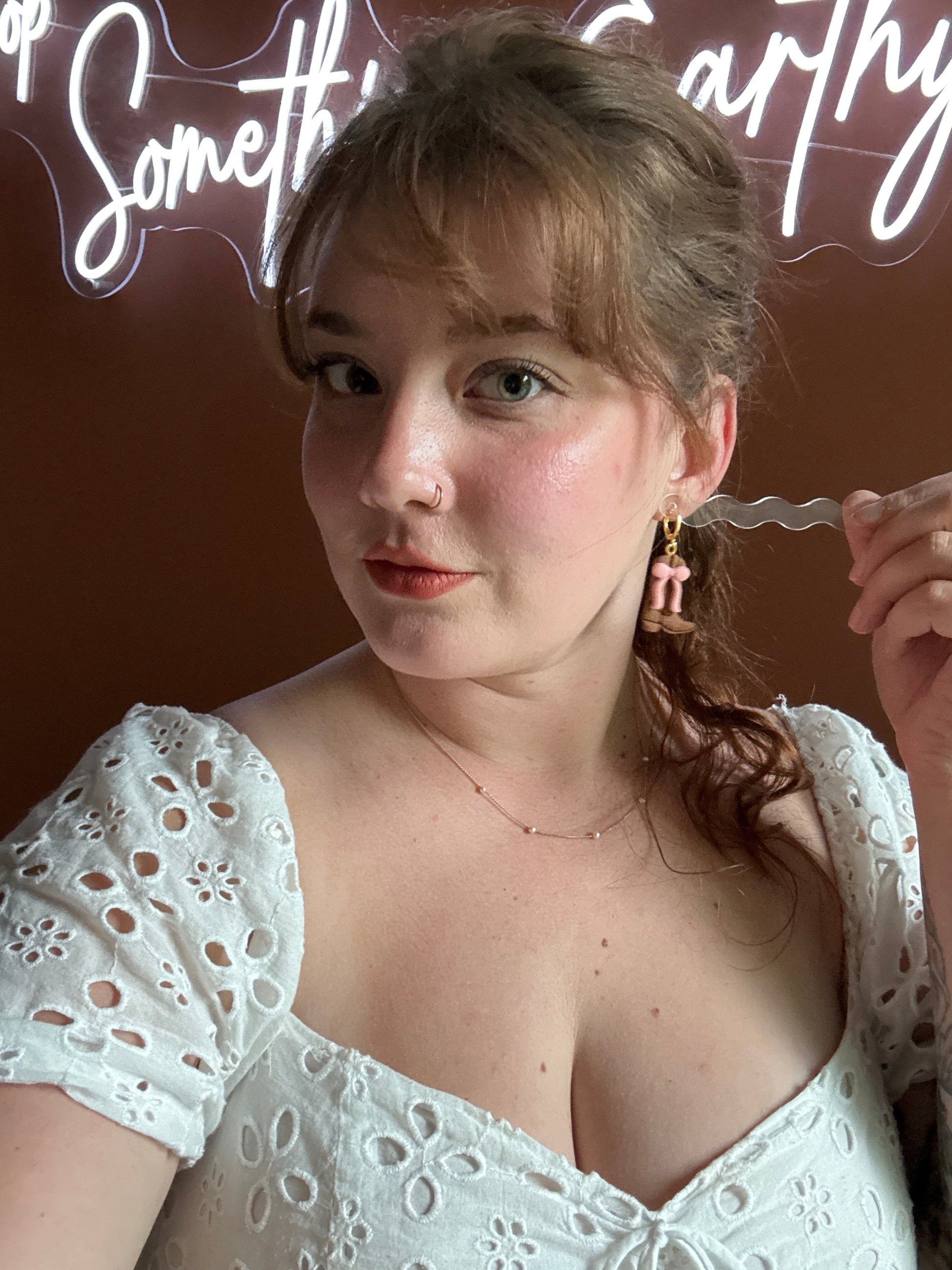 Earrings are made of polymer clay and hardware is 14k gold plated - nickel free. Each piece is rolled, cut, baked, sanded and assembled by hand, so sizes and custom-mixed colors will vary per piece. Due to the handmade nature of my pieces, slight imperfections are inevitable. Every piece is truly one of a kind.