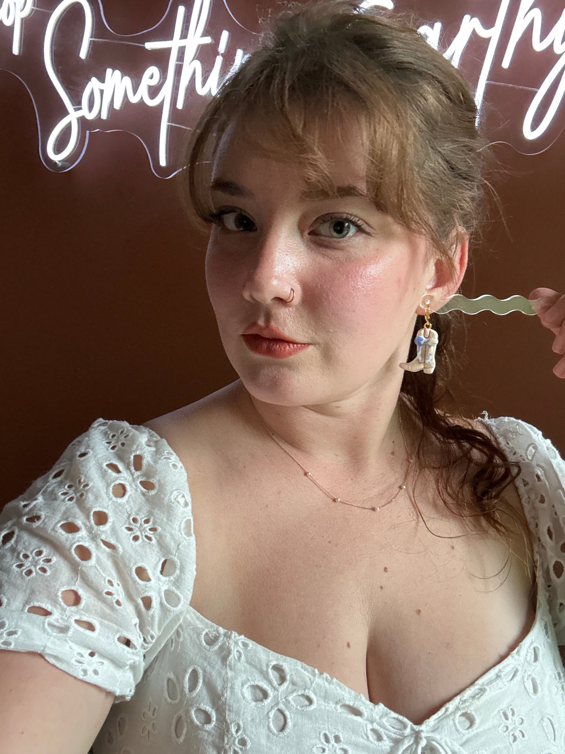 Earrings are made of polymer clay and hardware is 14k gold plated - nickel free. Each piece is rolled, cut, baked, sanded and assembled by hand, so sizes and custom-mixed colors will vary per piece. Due to the handmade nature of my pieces, slight imperfections are inevitable. Every piece is truly one of a kind.