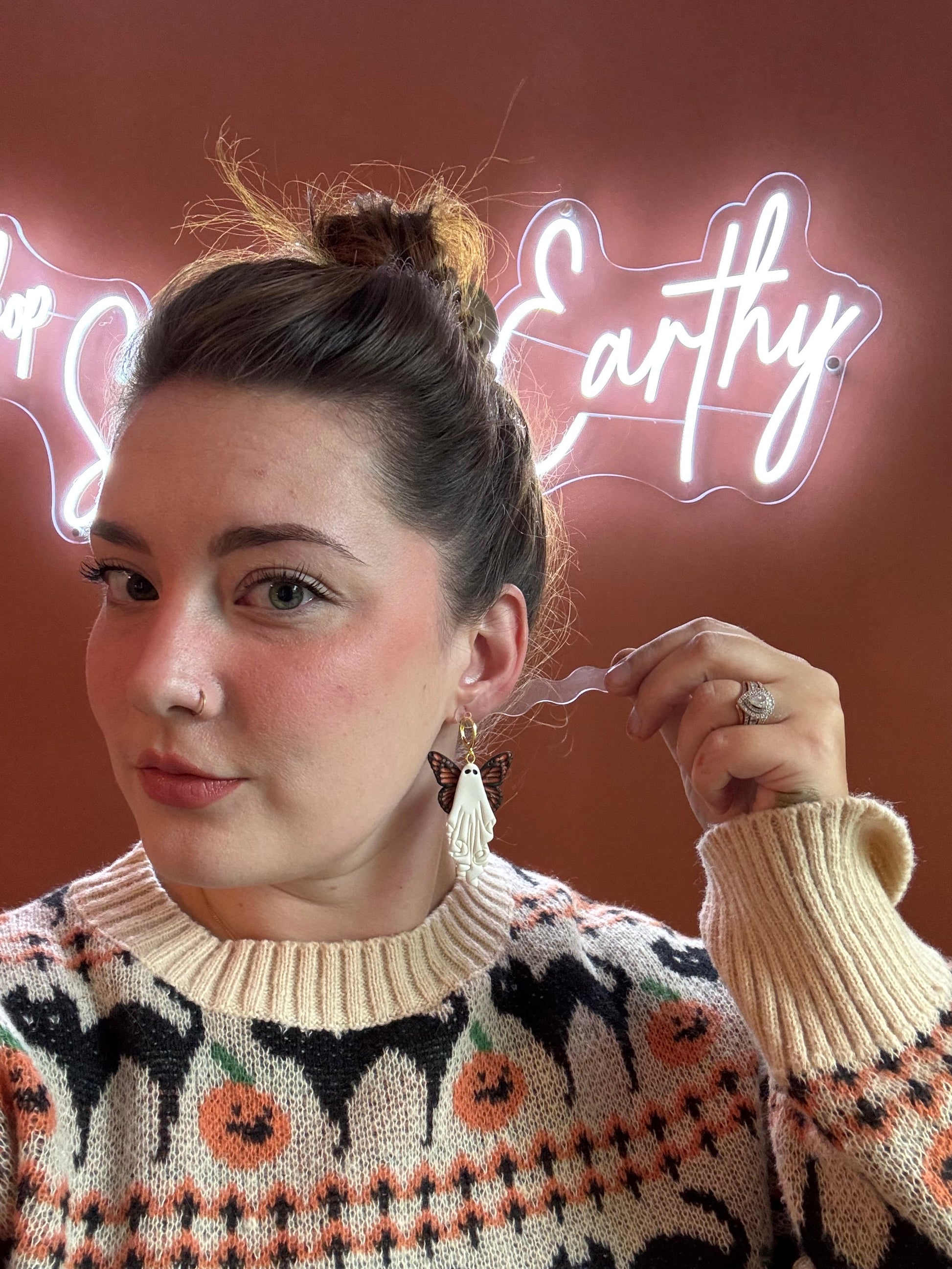 Earrings are made of polymer clay and hardware is 14k gold plated - nickel free. Each piece is rolled, cut, baked, sanded and assembled by hand, so sizes and custom-mixed colors will vary per piece. Due to the handmade nature of my pieces, slight imperfections are inevitable. Every piece is truly one of a kind.