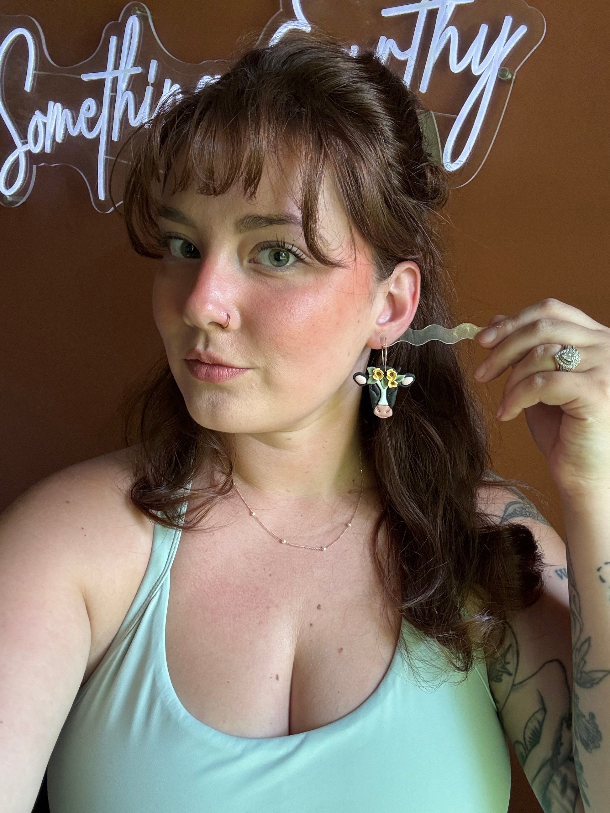 Earrings are made of polymer clay and hardware is 14k gold plated - nickel free. Each piece is rolled, cut, baked, sanded and assembled by hand, so sizes and custom-mixed colors will vary per piece. Due to the handmade nature of my pieces, slight imperfections are inevitable. Every piece is truly one of a kind.