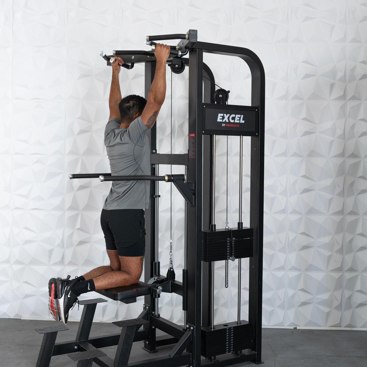 Excel Selectorized Assisted Chin / Dip Combo - Functional Handles - Collapsable Knee Pad - Adjustable Width Dip Bars