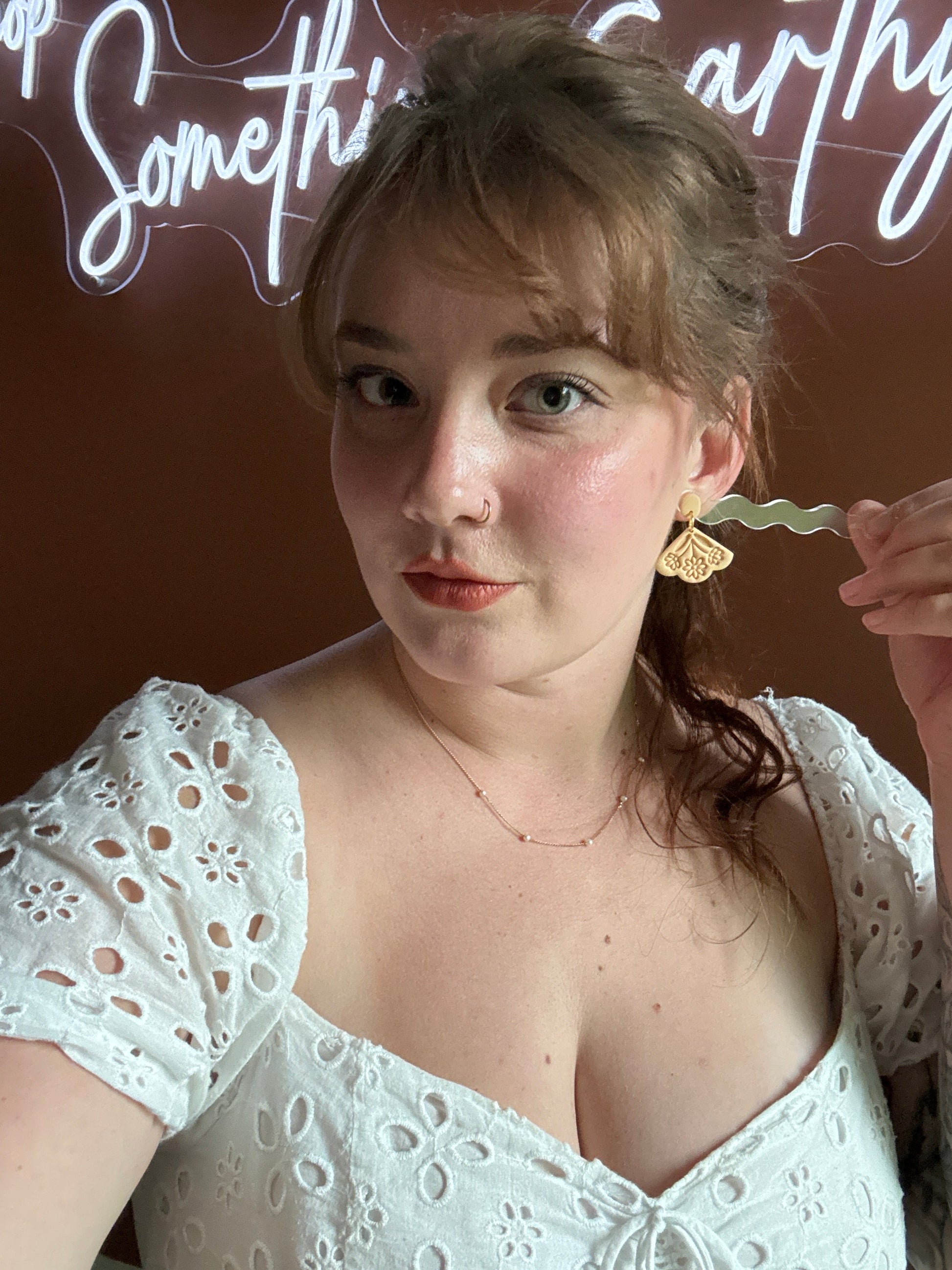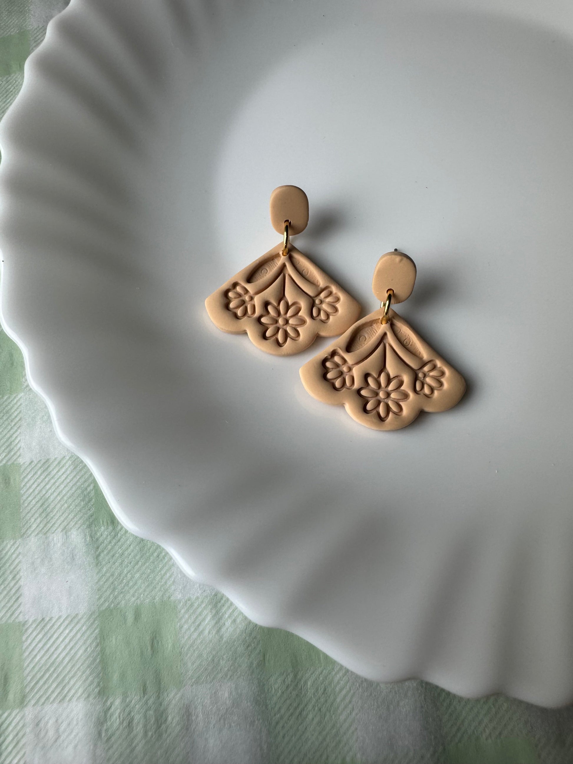 Earrings are made of polymer clay and hardware is surgical grade steel - nickel free. Each piece is rolled, cut, baked, sanded and assembled by hand, so sizes and custom-mixed colors will vary per piece. Due to the handmade nature of my pieces, slight imperfections are inevitable. Every piece is truly one of a kind.