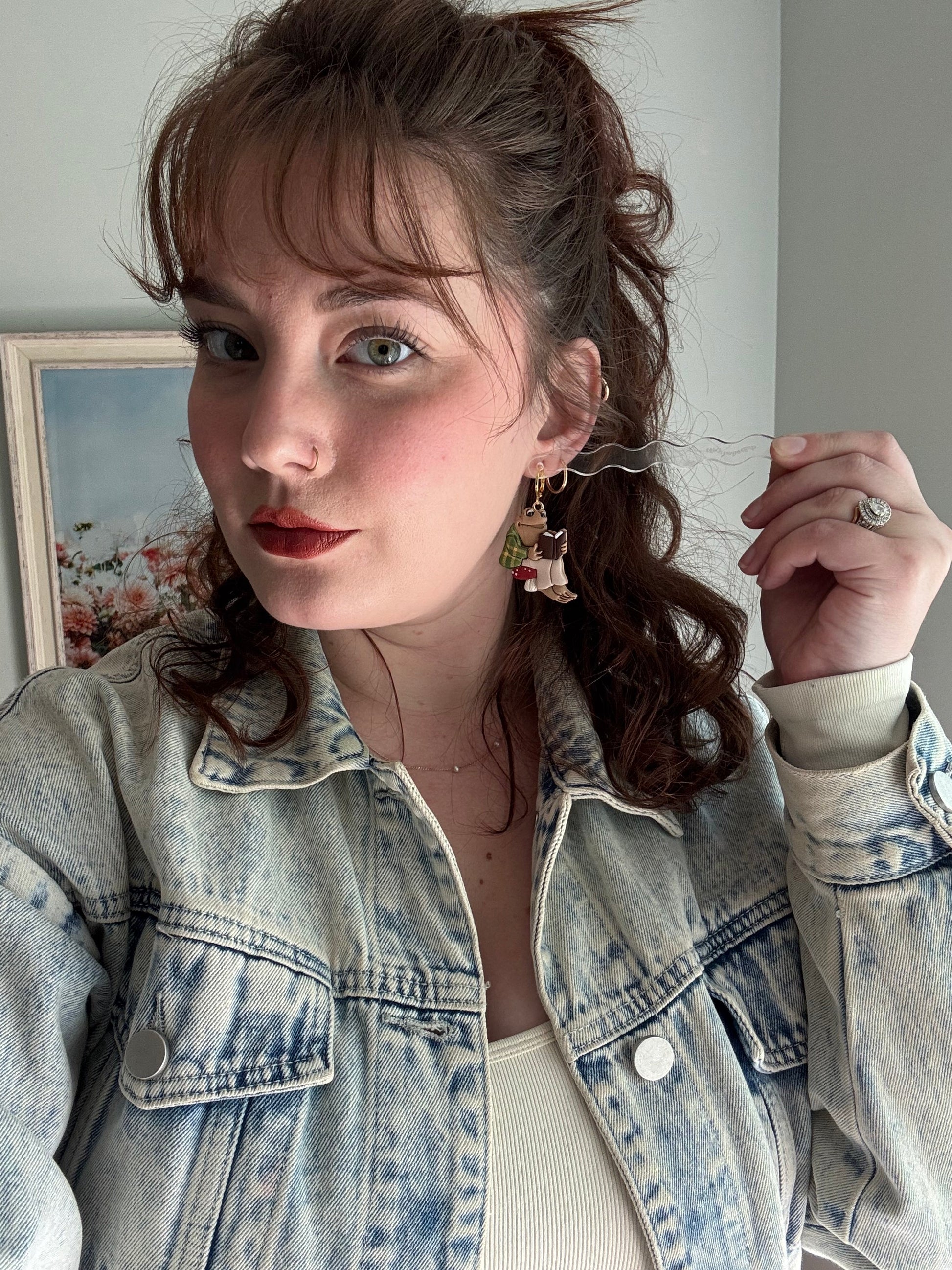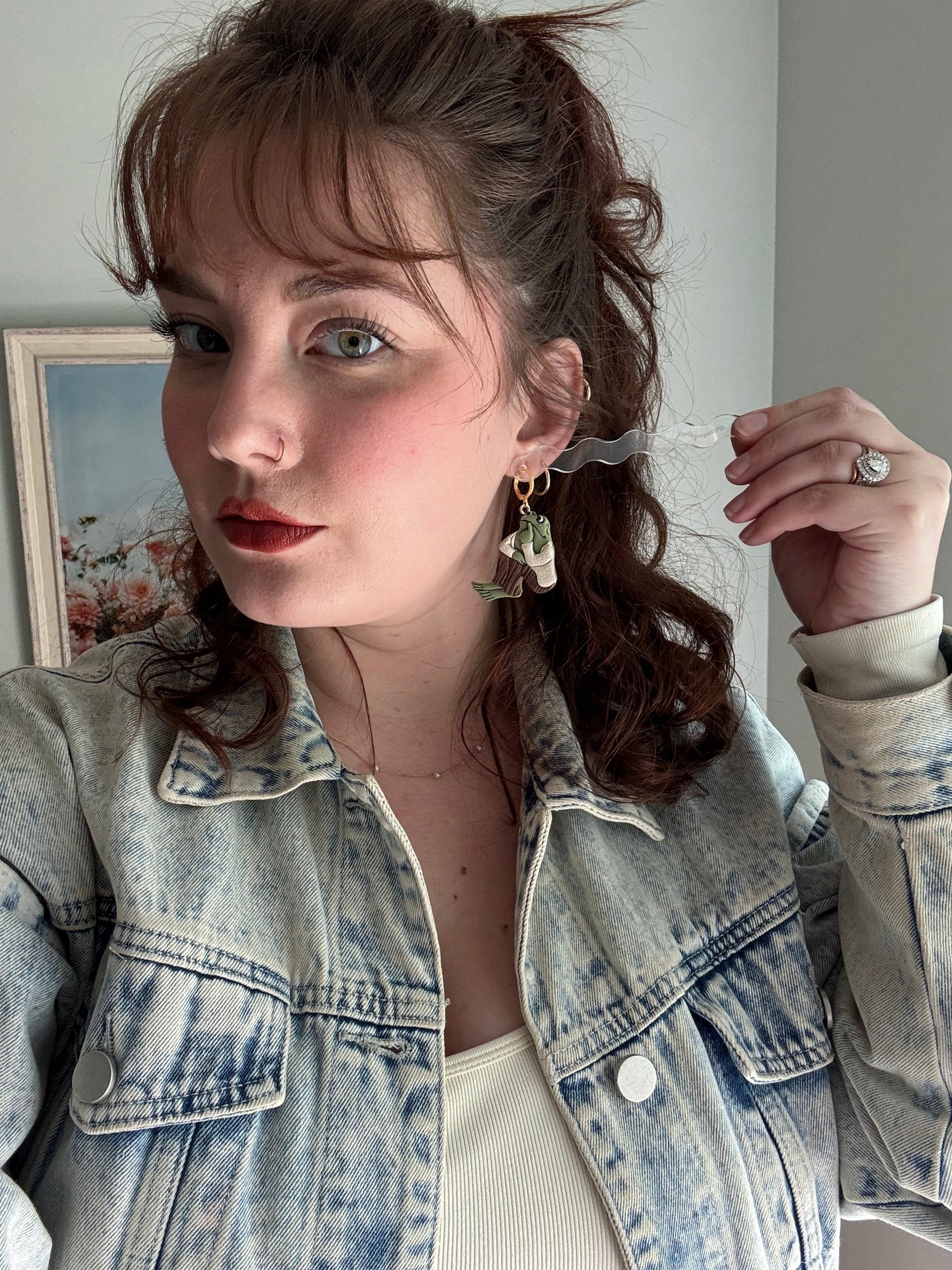 PRE ORDER!!! Please allow up to two weeks processing time for preorder items to ship. Earrings are made of polymer clay and hardware is 14k gold plated - nickel free. Each piece is rolled, cut, baked, sanded and assembled by hand, so sizes and custom-mixed colors will vary per piece. Due to the handmade nature of my pieces, slight imperfections are inevitable. Every piece is truly one of a kind.