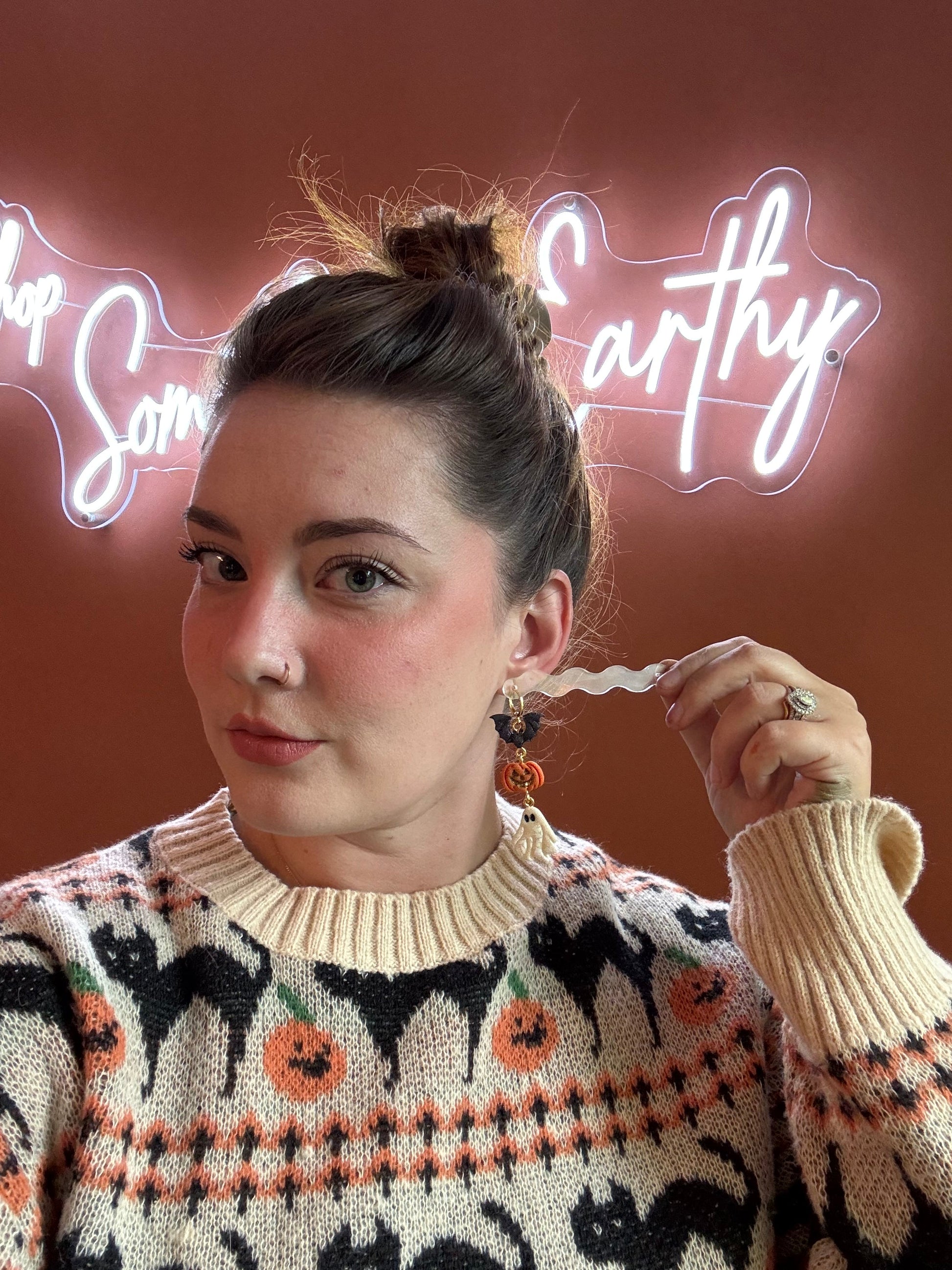 Earrings are made of polymer clay and hardware is 14k gold plated - nickel free. Each piece is rolled, cut, baked, sanded and assembled by hand, so sizes and custom-mixed colors will vary per piece. Due to the handmade nature of my pieces, slight imperfections are inevitable. Every piece is truly one of a kind.