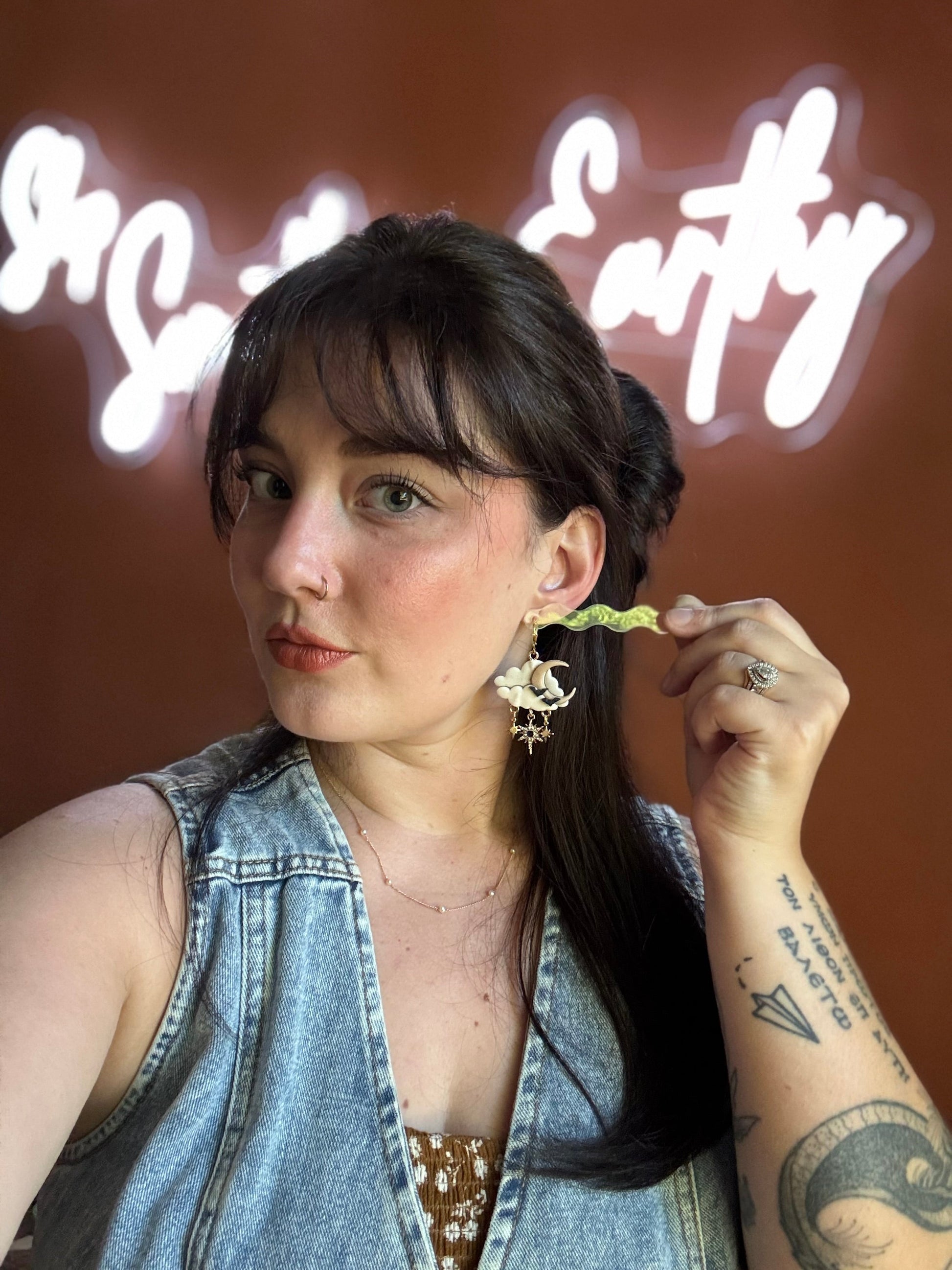 Earrings are made of polymer clay and hardware is 14k gold plated - nickel free. Each piece is rolled, cut, baked, sanded and assembled by hand, so sizes and custom-mixed colors will vary per piece. Due to the handmade nature of my pieces, slight imperfections are inevitable. Every piece is truly one of a kind.