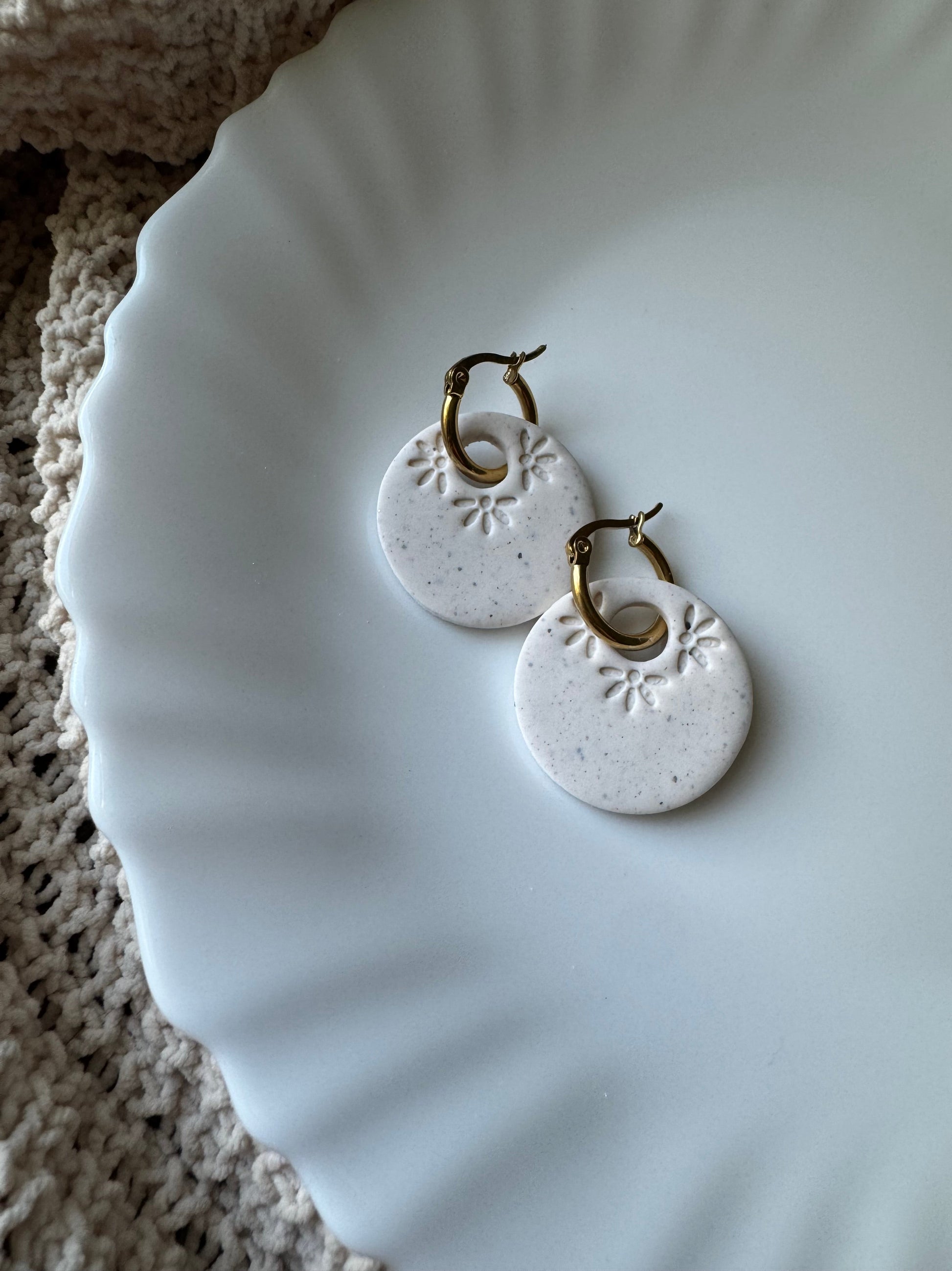 Earrings are made of polymer clay and hardware is 14k gold plated - nickel free. Each piece is rolled, cut, baked, sanded and assembled by hand, so sizes and custom-mixed colors will vary per piece. Due to the handmade nature of my pieces, slight imperfections are inevitable. Every piece is truly one of a kind.