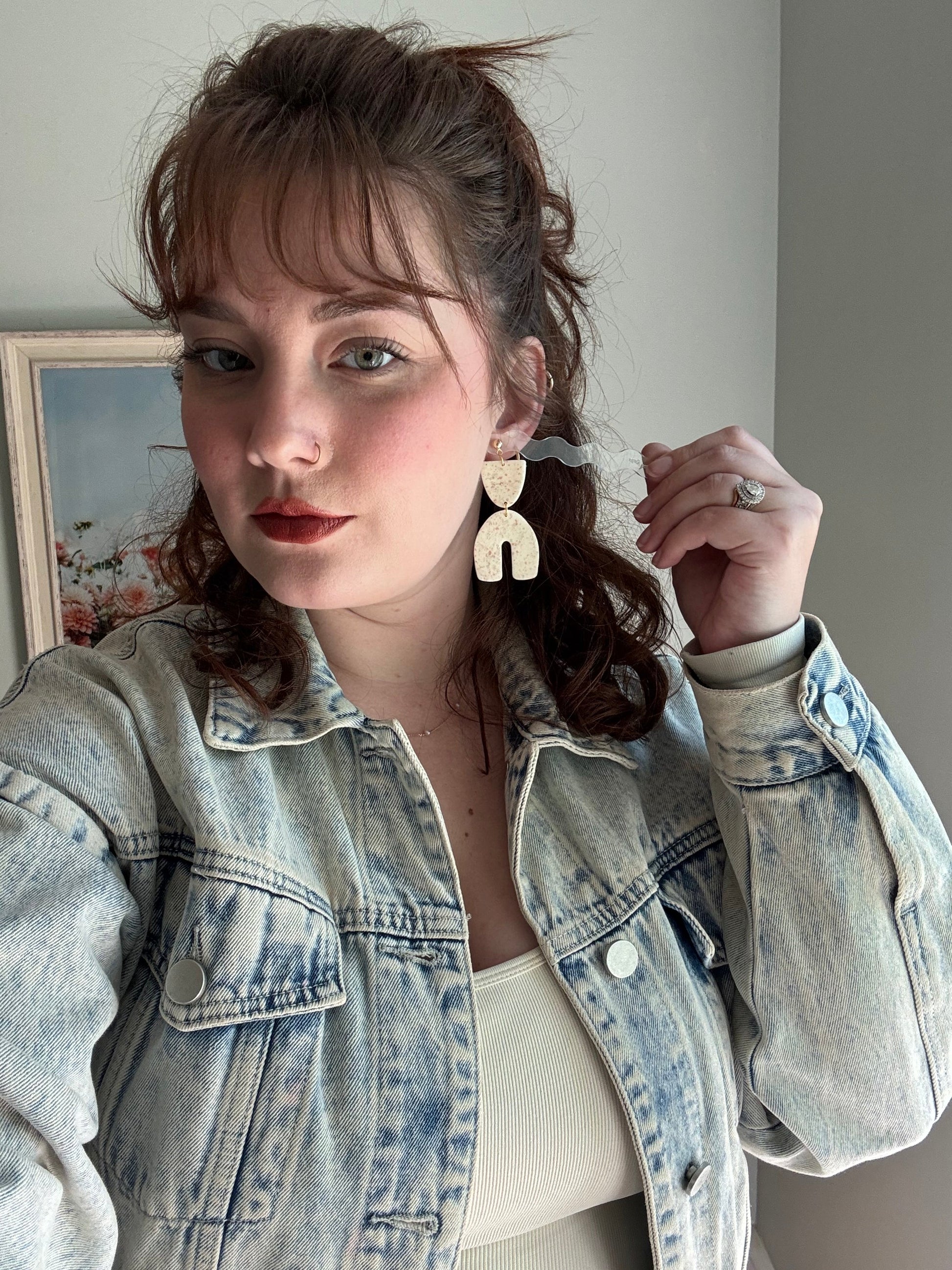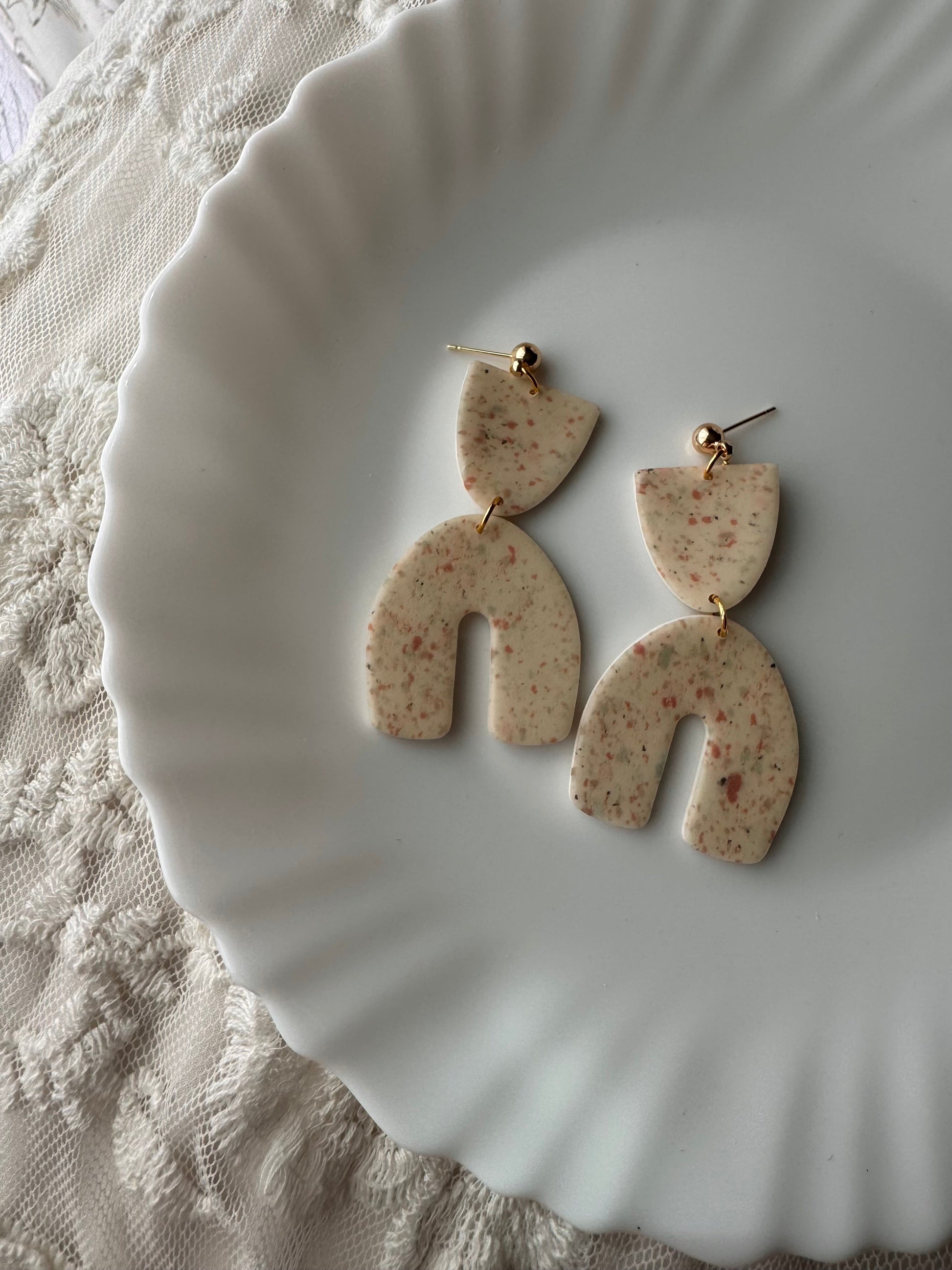Earrings are made of polymer clay and hardware is 14k gold plated - nickel free. Each piece is rolled, cut, baked, sanded and assembled by hand, so sizes and custom-mixed colors will vary per piece. Due to the handmade nature of my pieces, slight imperfections are inevitable. Every piece is truly one of a kind.