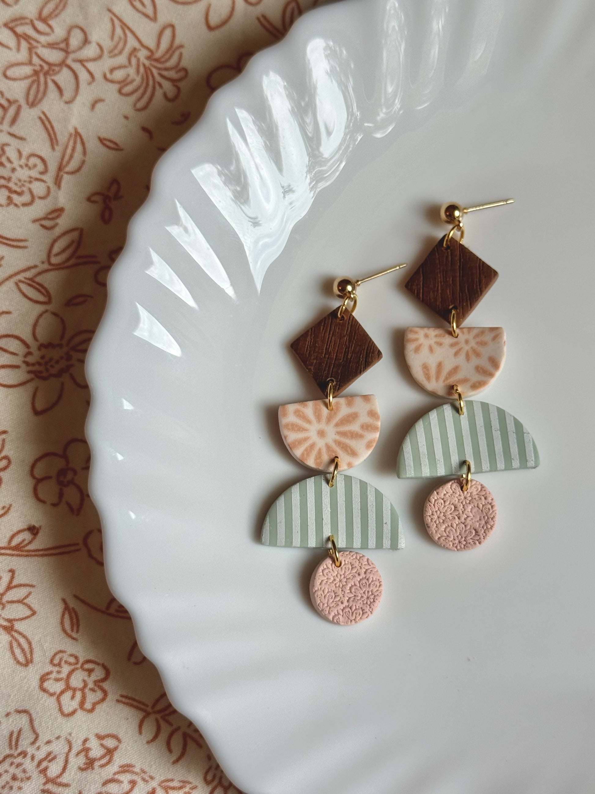 Earrings are made of polymer clay and hardware is 14k gold plated - nickel free. Each piece is rolled, cut, baked, sanded and assembled by hand, so sizes and custom-mixed colors will vary per piece. Due to the handmade nature of my pieces, slight imperfections are inevitable. Every piece is truly one of a kind.