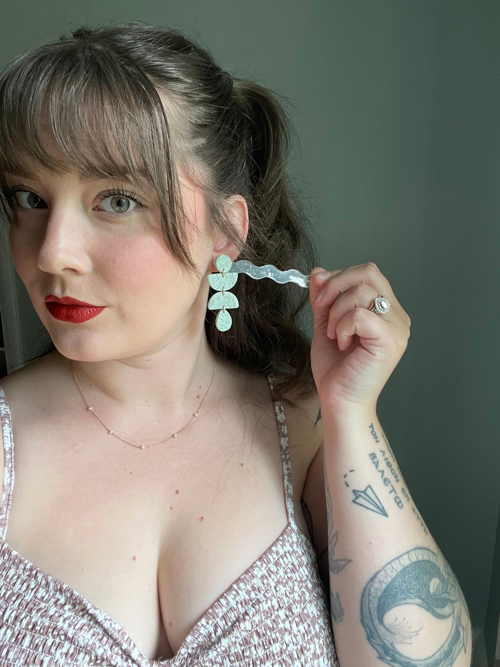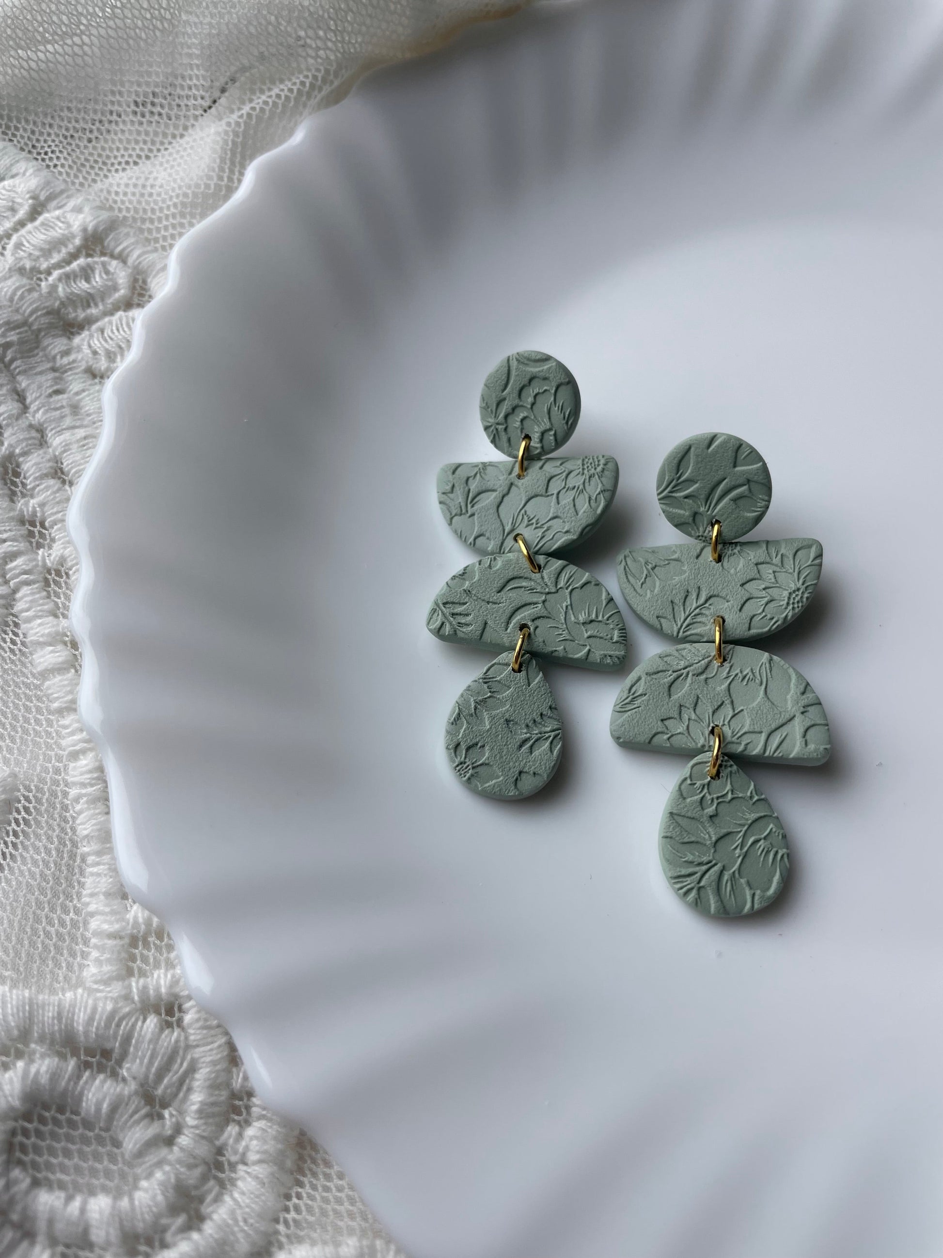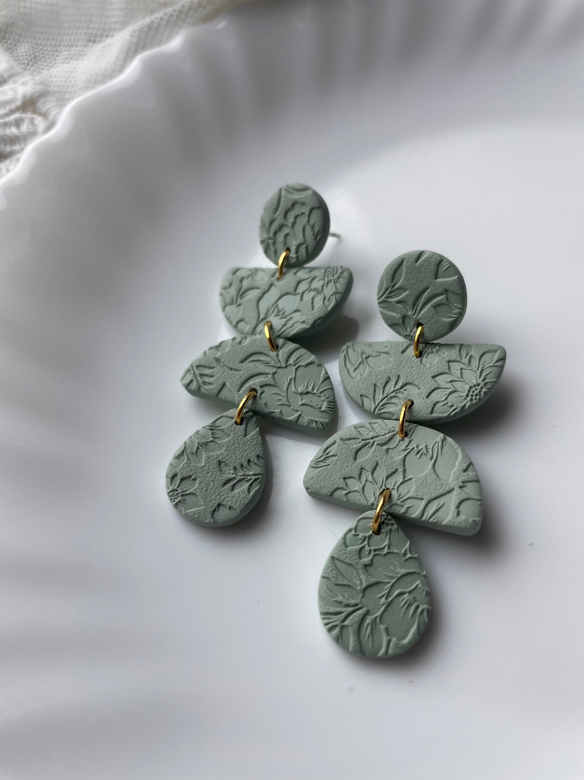 Earrings are made of polymer clay and hardware is surgical grade steel - nickel free. Each piece is rolled, cut, baked, sanded and assembled by hand, so sizes and custom-mixed colors will vary per piece. Due to the handmade nature of my pieces, slight imperfections are inevitable. Every piece is truly one of a kind.
