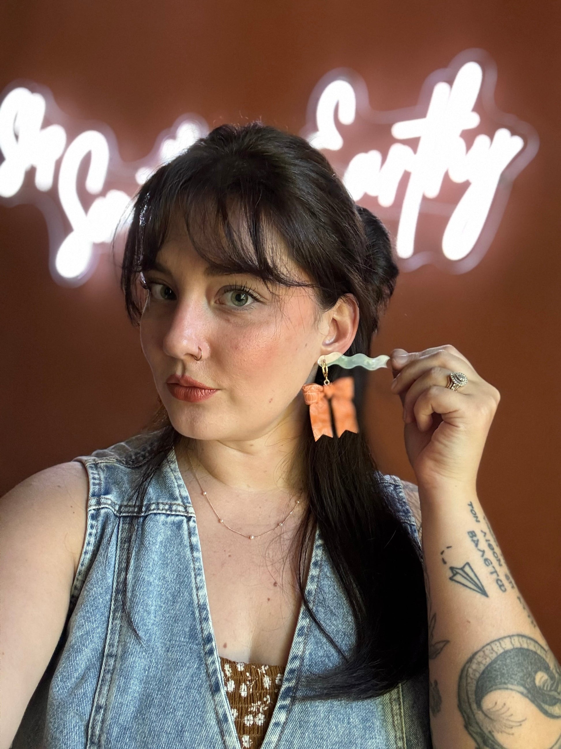 Earrings are made of polymer clay and hardware is 14k gold plated - nickel free. Each piece is rolled, cut, baked, sanded and assembled by hand, so sizes and custom-mixed colors will vary per piece. Due to the handmade nature of my pieces, slight imperfections are inevitable. Every piece is truly one of a kind.