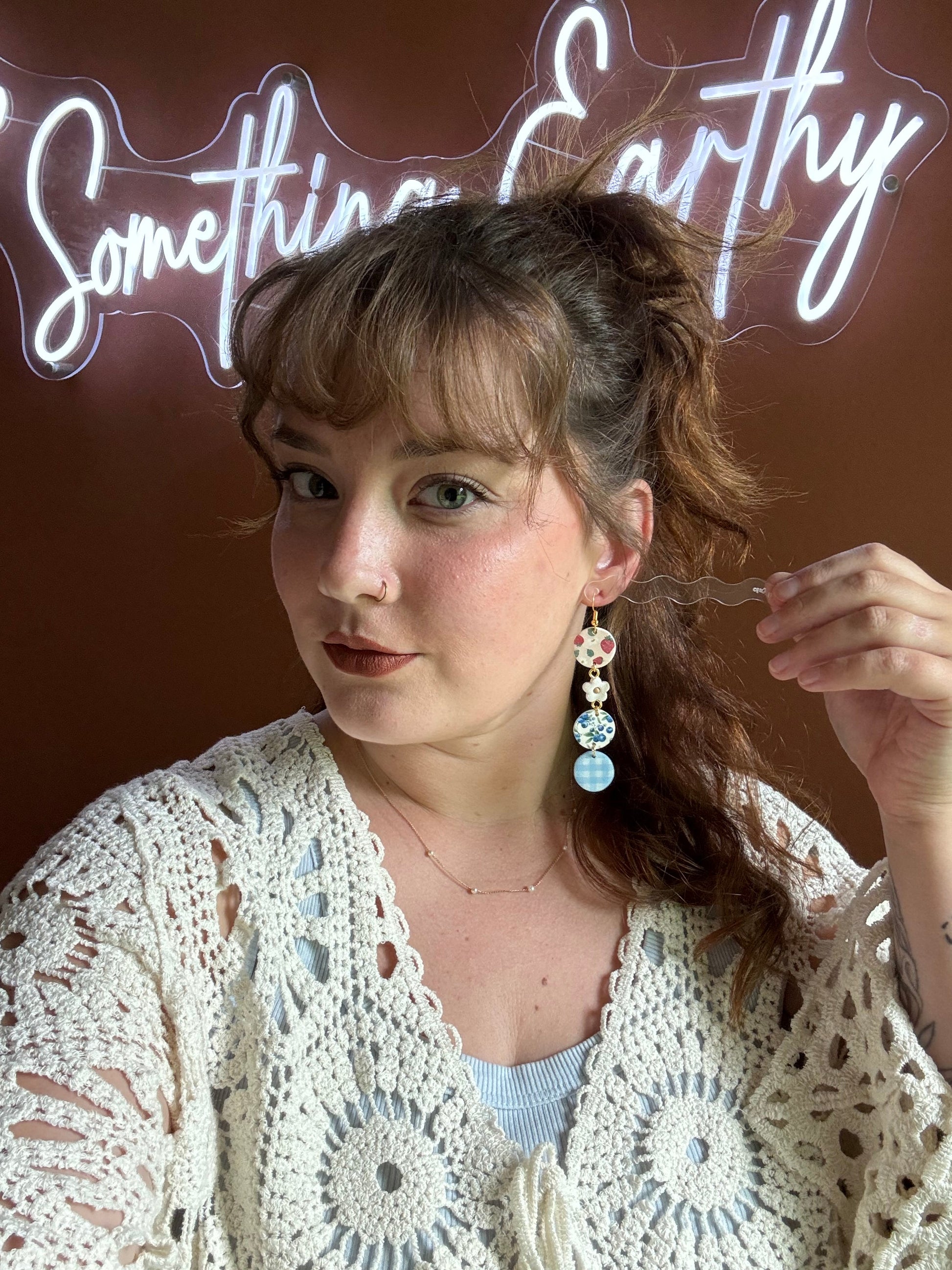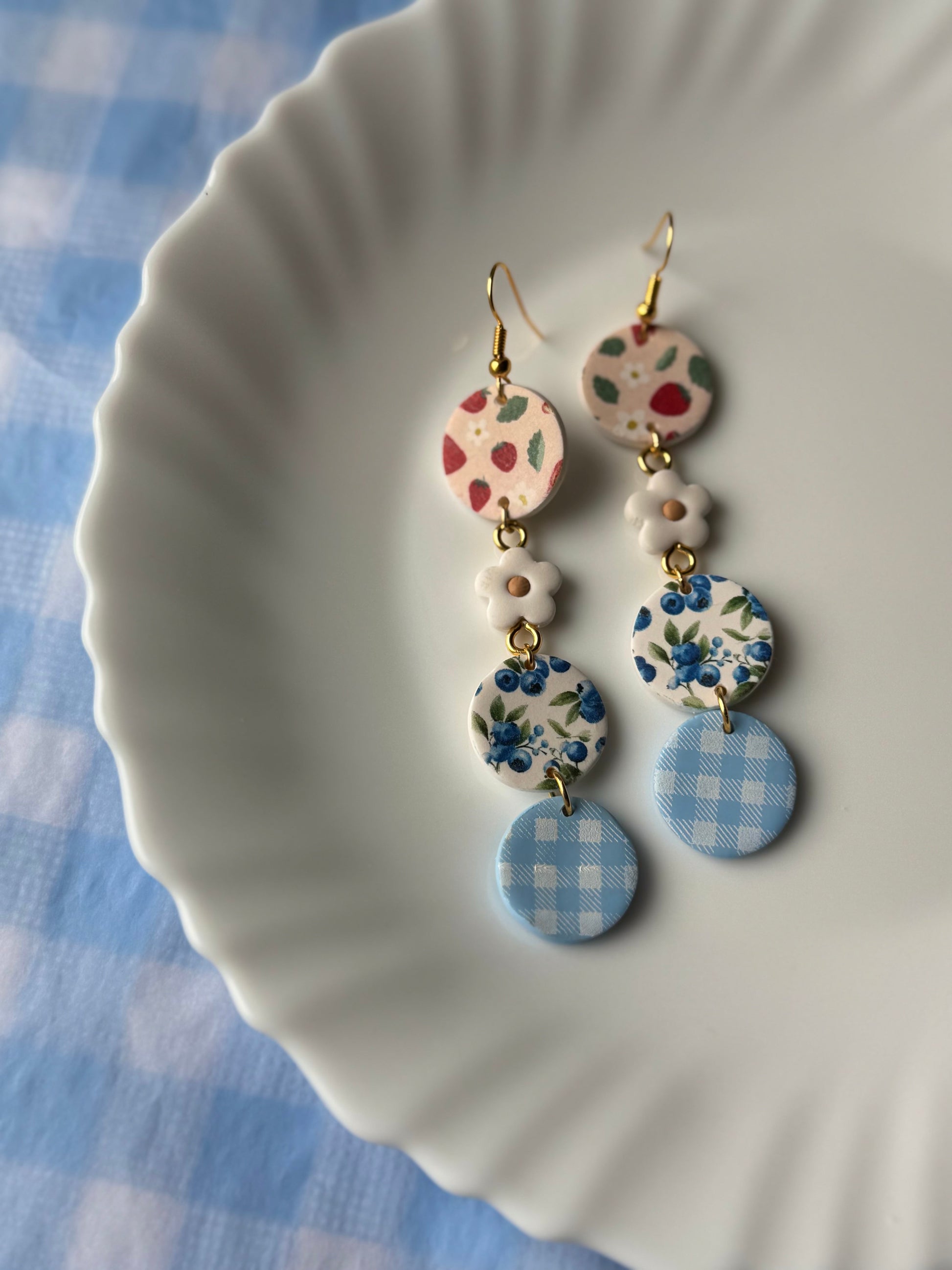 Earrings are made of polymer clay and hardware is 14k gold plated - nickel free. Each piece is rolled, cut, baked, sanded and assembled by hand, so sizes and custom-mixed colors will vary per piece. Due to the handmade nature of my pieces, slight imperfections are inevitable. Every piece is truly one of a kind.