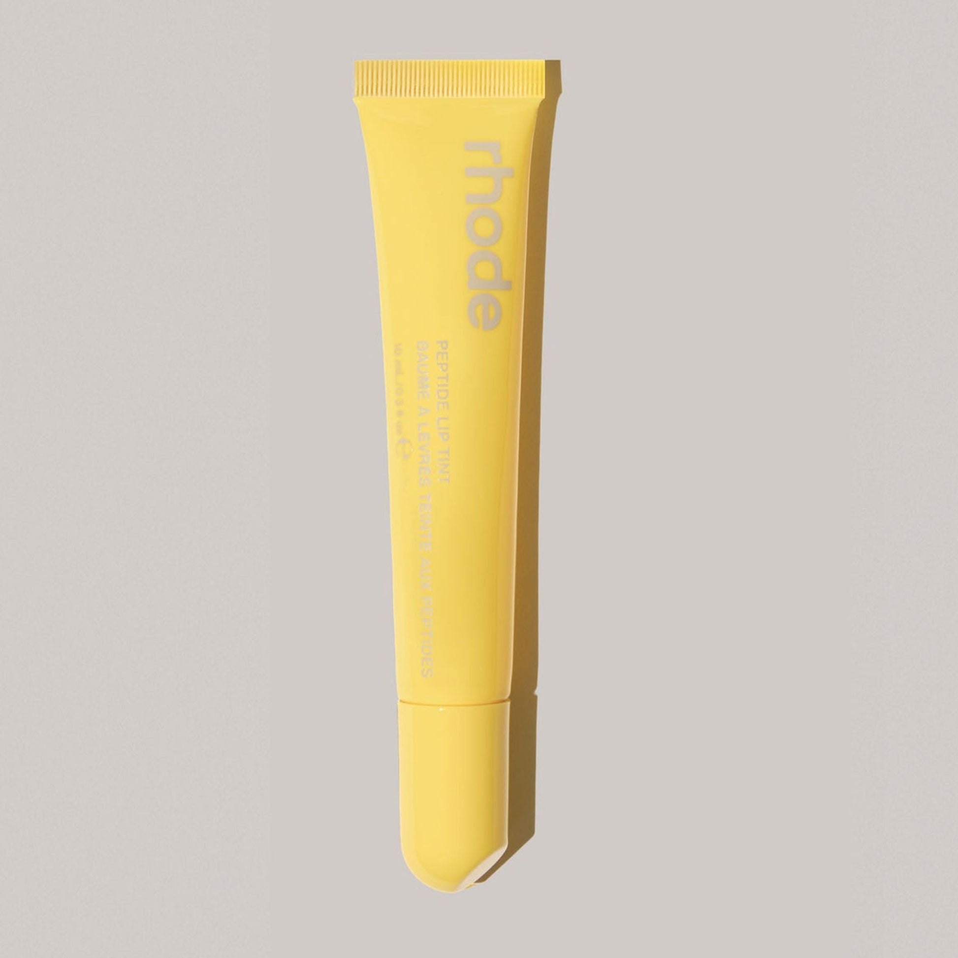 Discover the exclusive Peptide Lip Tint in Lemontini, available only this Rhode summer. This shimmering, translucent gold gloss delivers a subtle glow and features the refreshing scent of a zesty lemon cocktail.