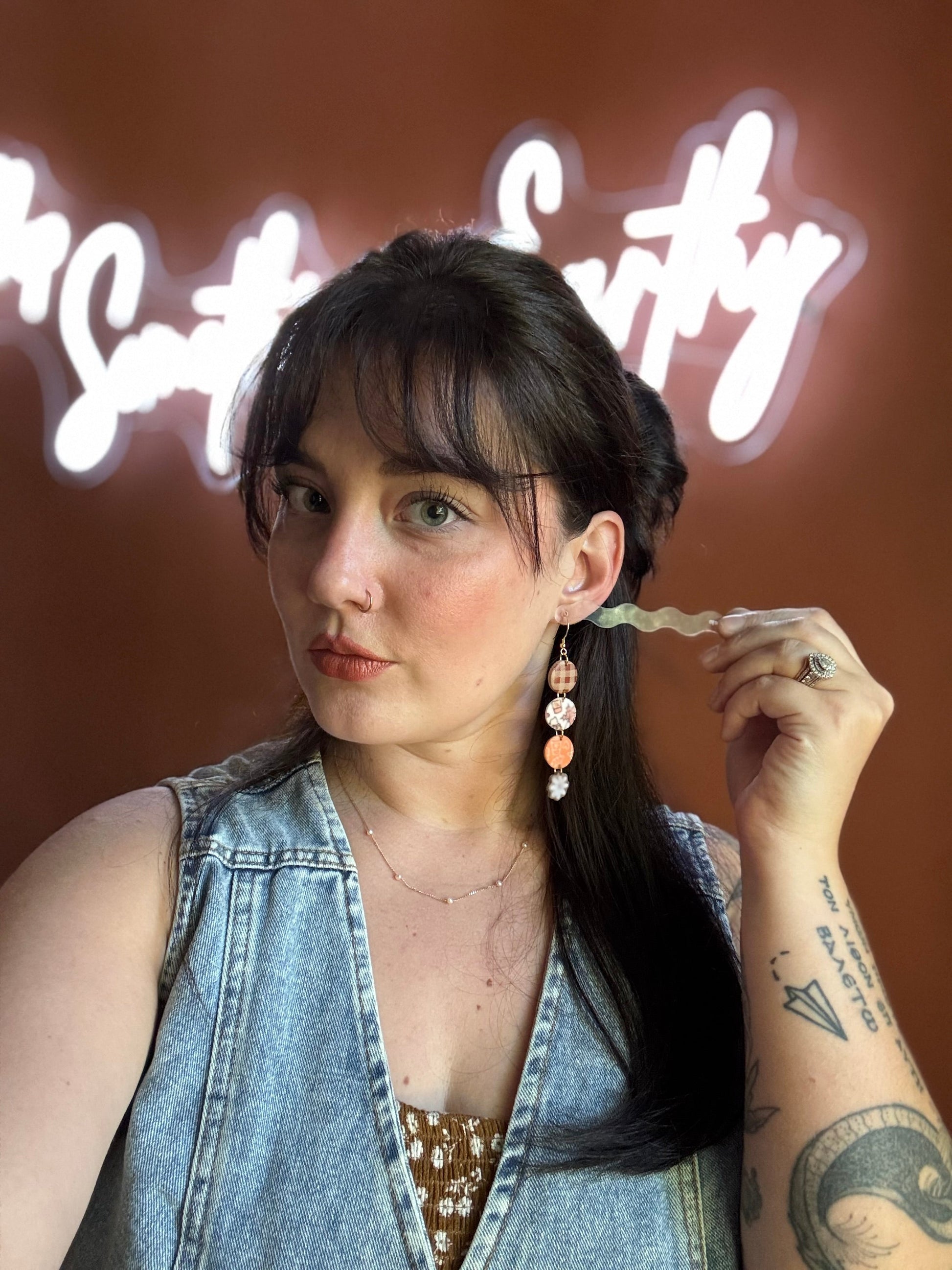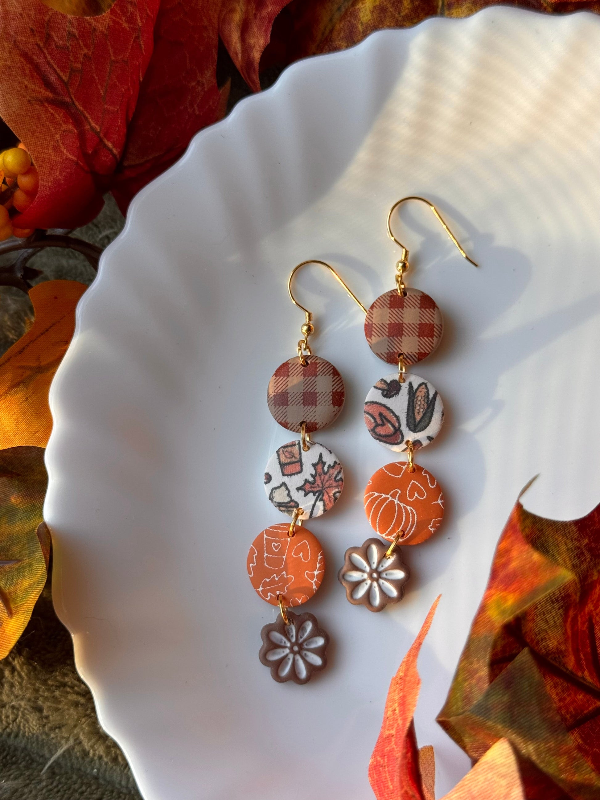 Earrings are made of polymer clay and hardware is 14k gold plated - nickel free. Each piece is rolled, cut, baked, sanded and assembled by hand, so sizes and custom-mixed colors will vary per piece. Due to the handmade nature of my pieces, slight imperfections are inevitable. Every piece is truly one of a kind.