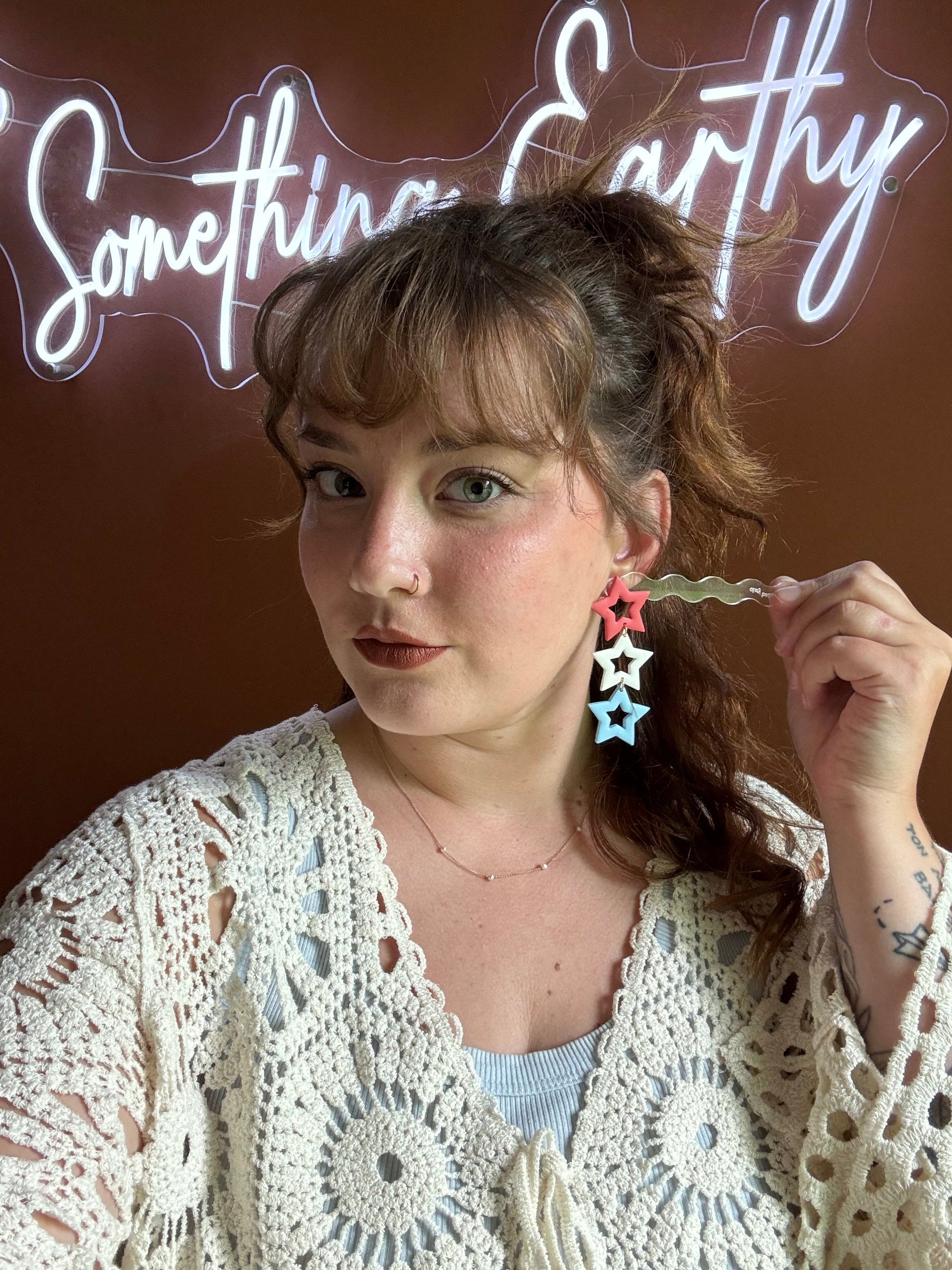 Earrings are made of polymer clay and hardware is surgical grade steel - nickel free. Each piece is rolled, cut, baked, sanded and assembled by hand, so sizes and custom-mixed colors will vary per piece. Due to the handmade nature of my pieces, slight imperfections are inevitable. Every piece is truly one of a kind.