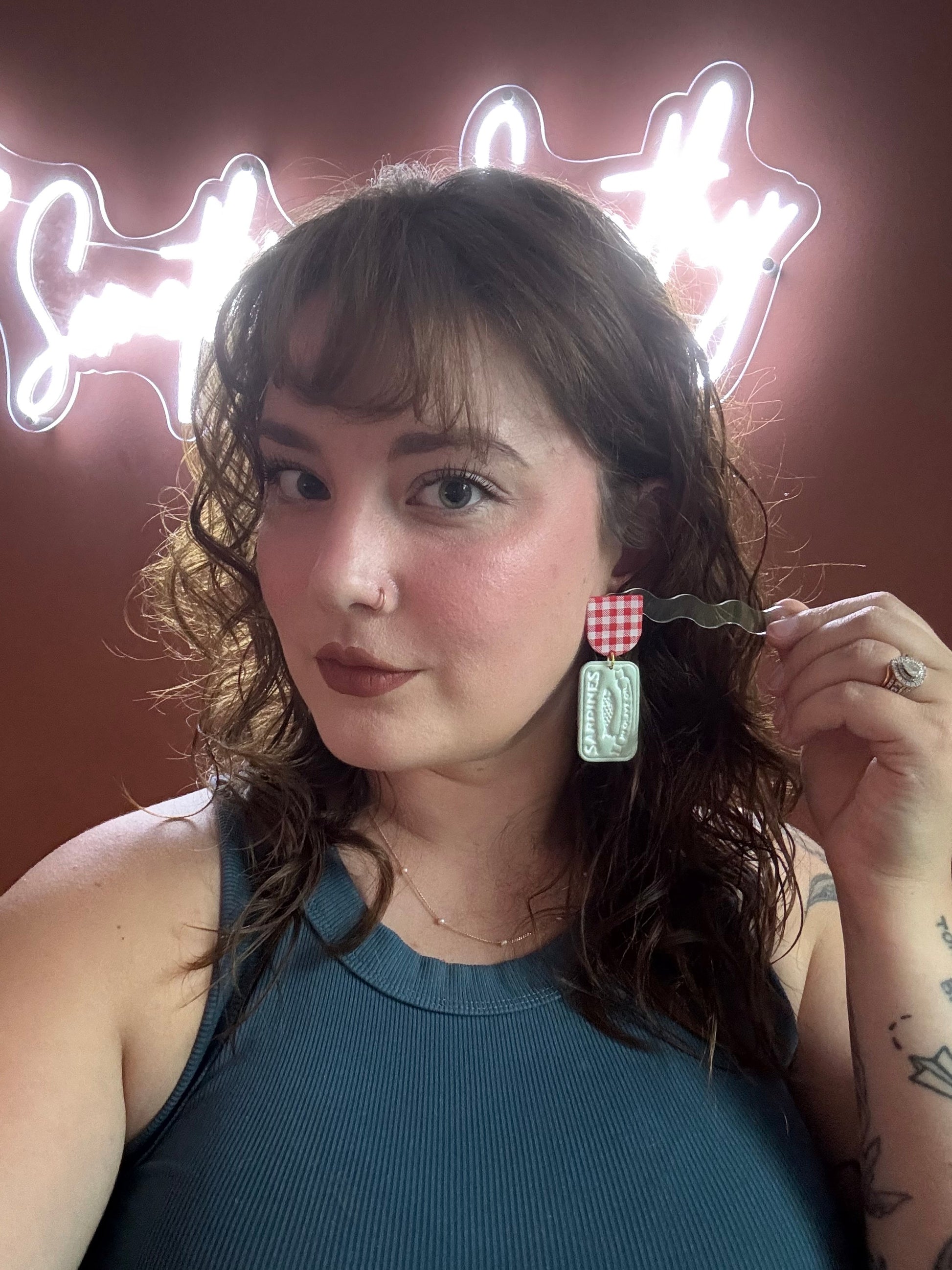 Earrings are made of polymer clay and hardware is surgical grade steel - nickel free. Each piece is rolled, cut, baked, sanded and assembled by hand, so sizes and custom-mixed colors will vary per piece. Due to the handmade nature of my pieces, slight imperfections are inevitable. Every piece is truly one of a kind.