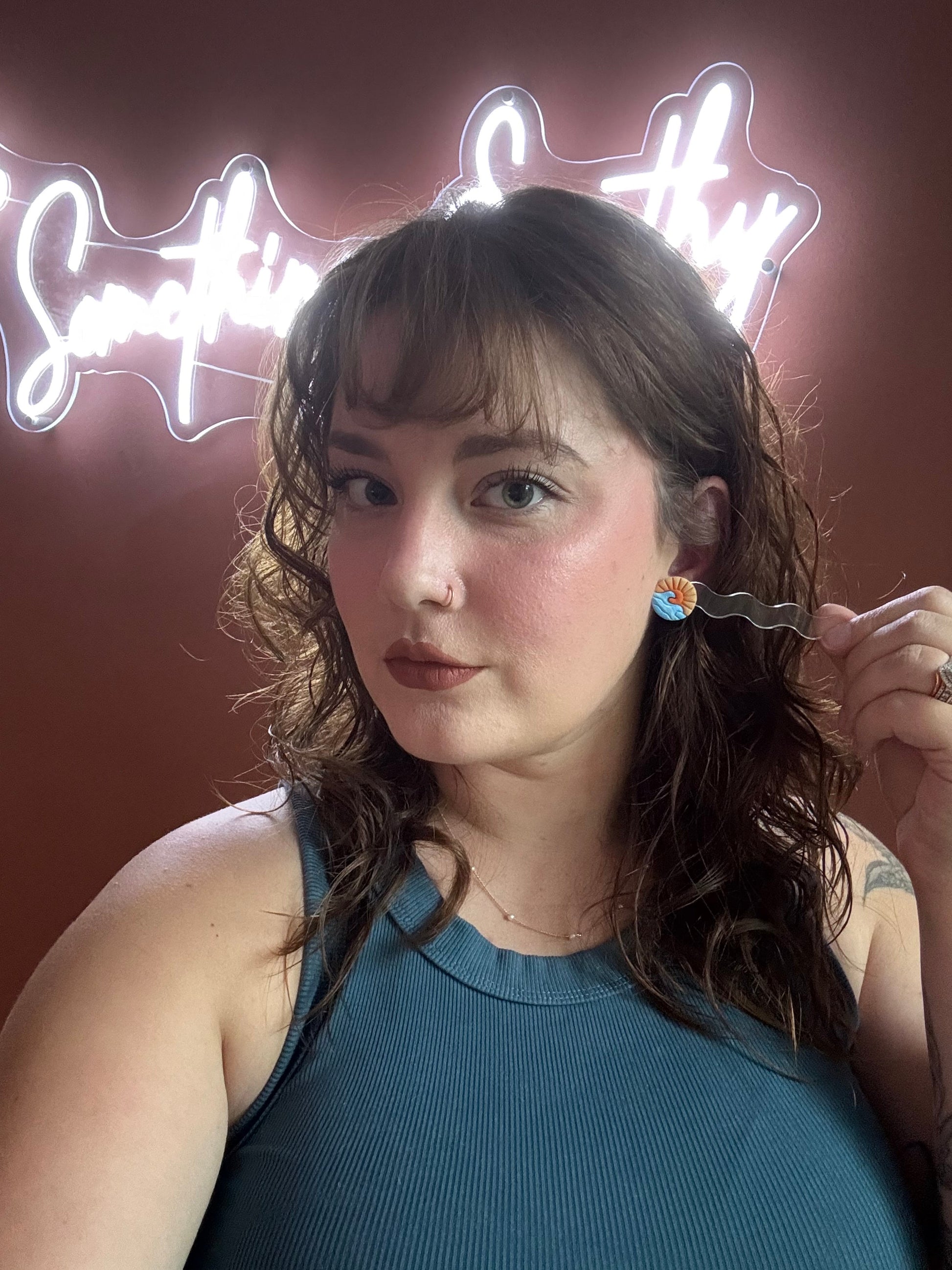 Earrings are made of polymer clay and hardware is surgical grade steel - nickel free. Each piece is rolled, cut, baked, sanded and assembled by hand, so sizes and custom-mixed colors will vary per piece. Due to the handmade nature of my pieces, slight imperfections are inevitable. Every piece is truly one of a kind.