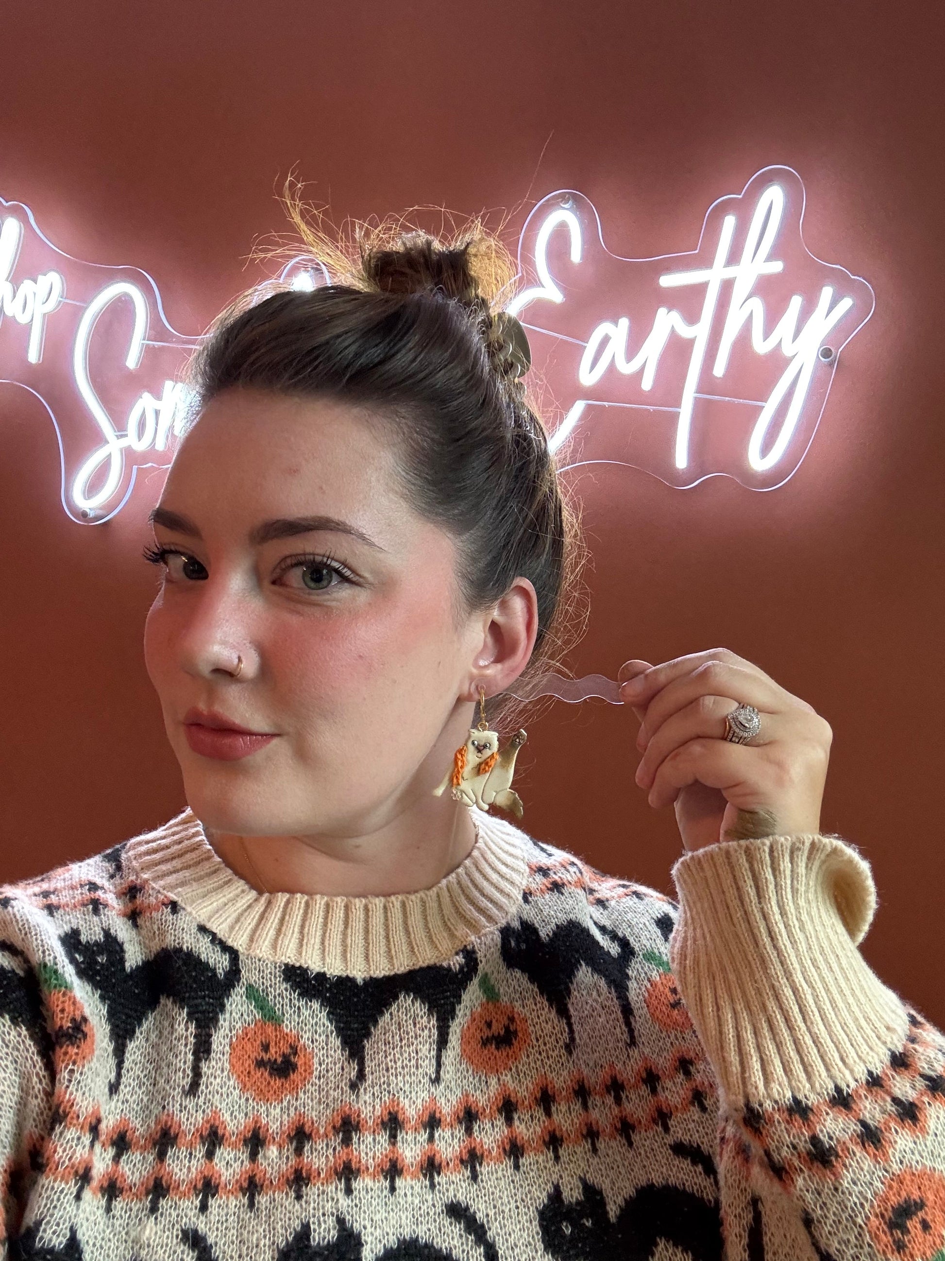 Earrings are made of polymer clay and hardware is 14k gold plated - nickel free. Each piece is rolled, cut, baked, sanded and assembled by hand, so sizes and custom-mixed colors will vary per piece. Due to the handmade nature of my pieces, slight imperfections are inevitable. Every piece is truly one of a kind.