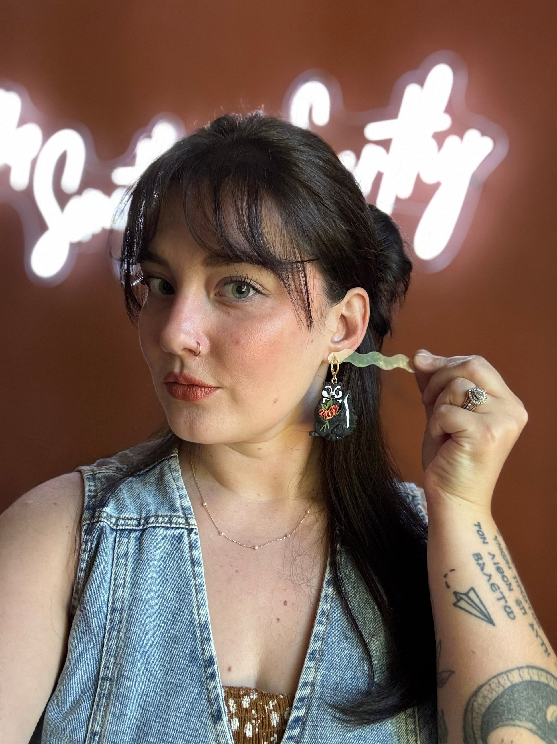 Earrings are made of polymer clay and hardware is 14k gold plated - nickel free. Each piece is rolled, cut, baked, sanded and assembled by hand, so sizes and custom-mixed colors will vary per piece. Due to the handmade nature of my pieces, slight imperfections are inevitable. Every piece is truly one of a kind.