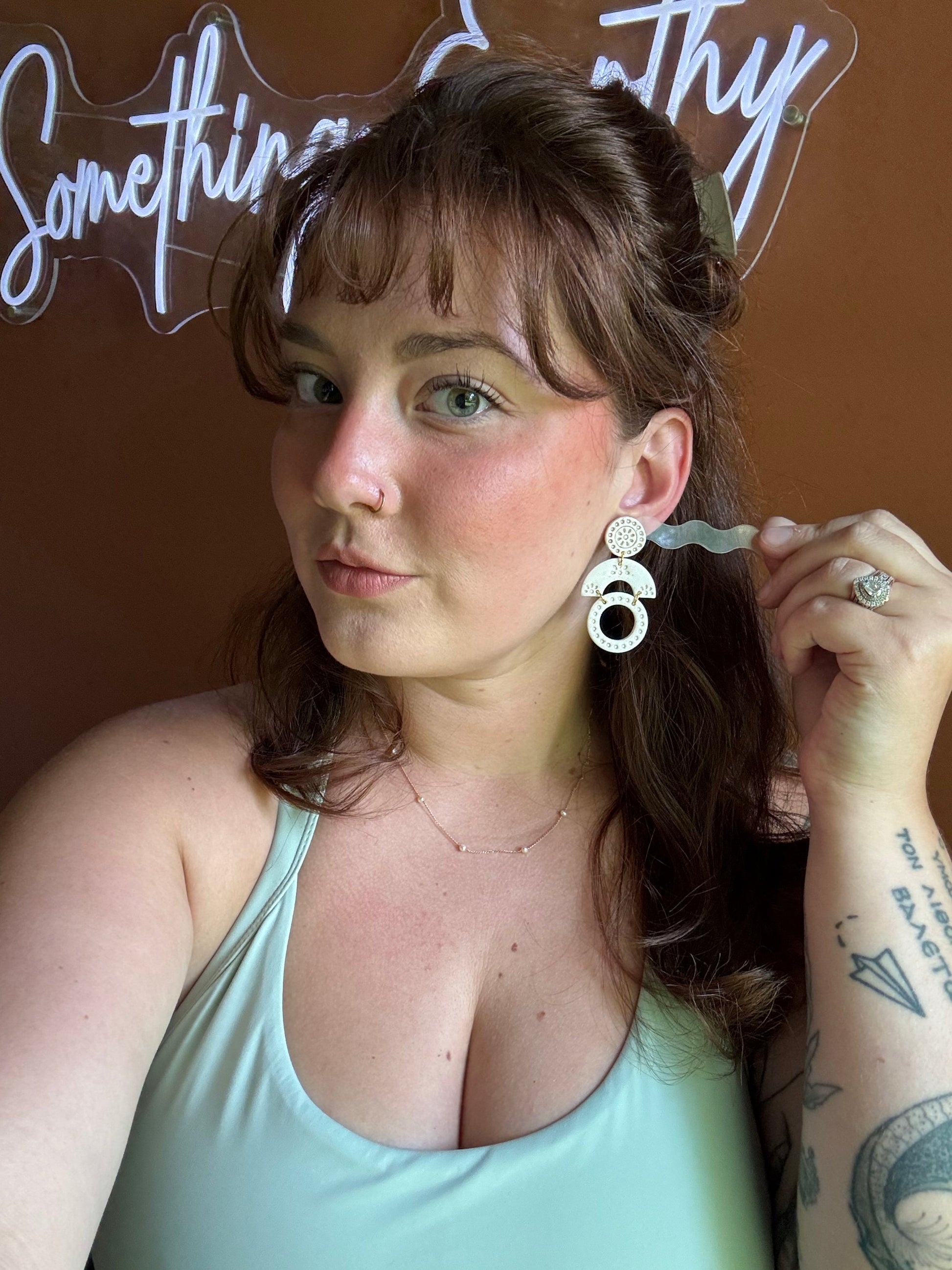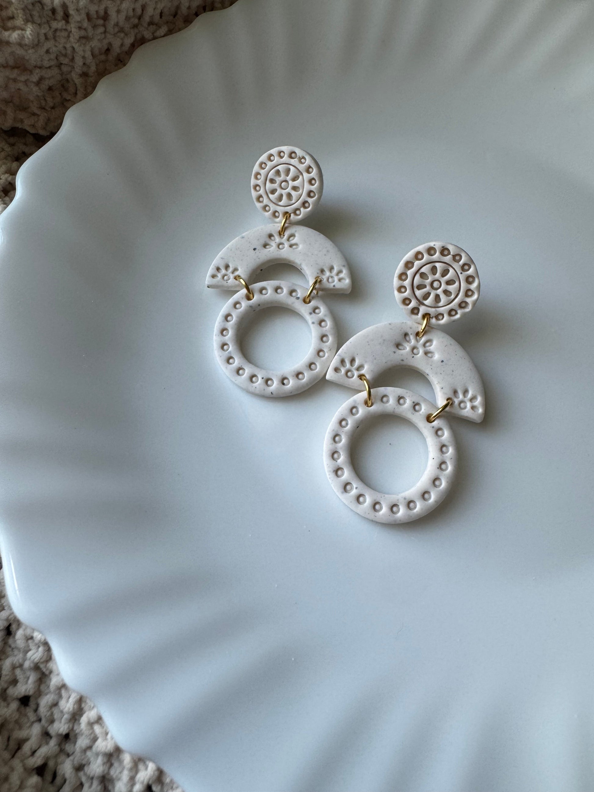 Earrings are made of polymer clay and hardware is surgical grade steel - nickel free. Each piece is rolled, cut, baked, sanded and assembled by hand, so sizes and custom-mixed colors will vary per piece. Due to the handmade nature of my pieces, slight imperfections are inevitable. Every piece is truly one of a kind.