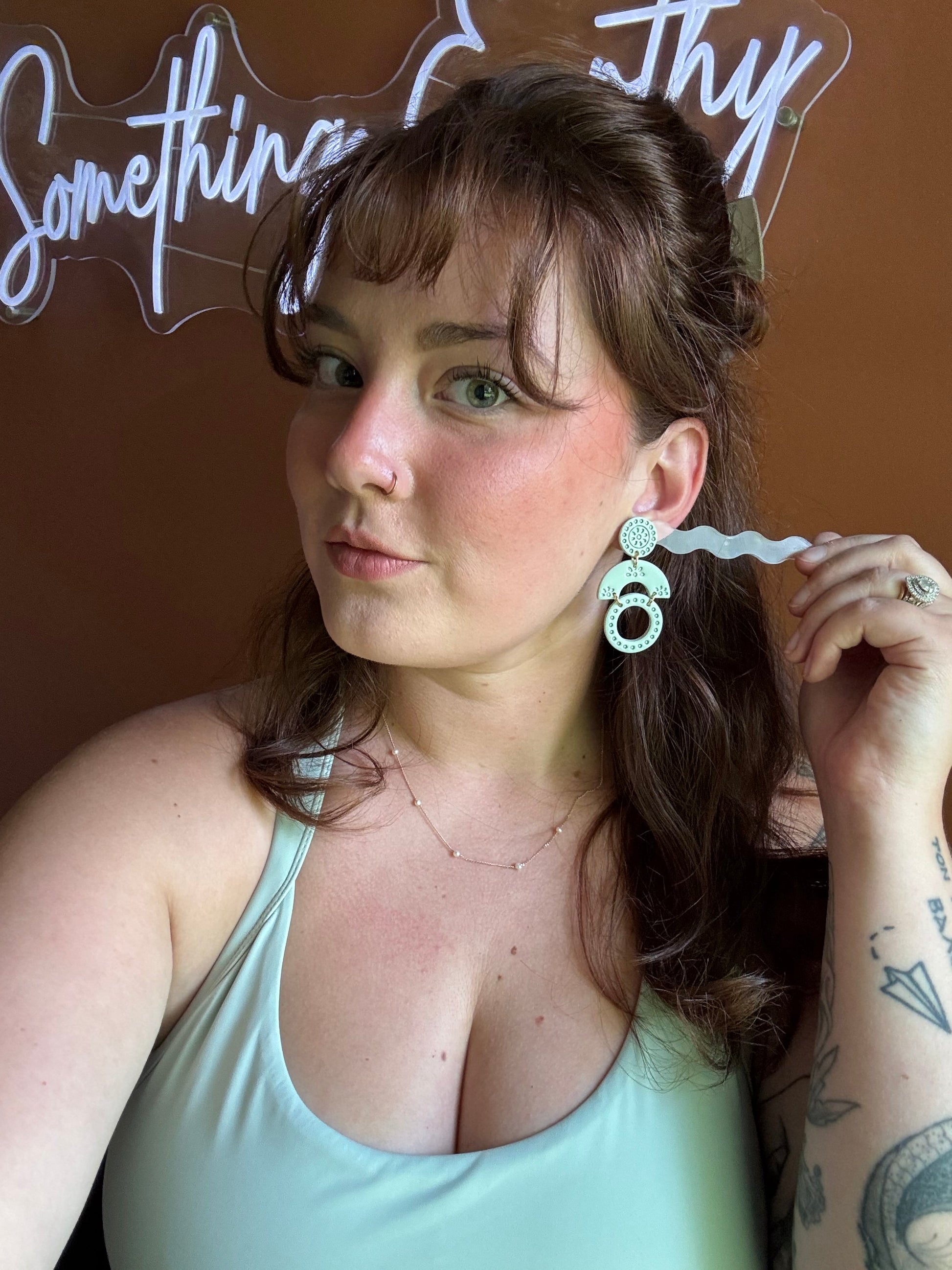 Earrings are made of polymer clay and hardware is 14k gold plated - nickel free. Each piece is rolled, cut, baked, sanded and assembled by hand, so sizes and custom-mixed colors will vary per piece. Due to the handmade nature of my pieces, slight imperfections are inevitable. Every piece is truly one of a kind.