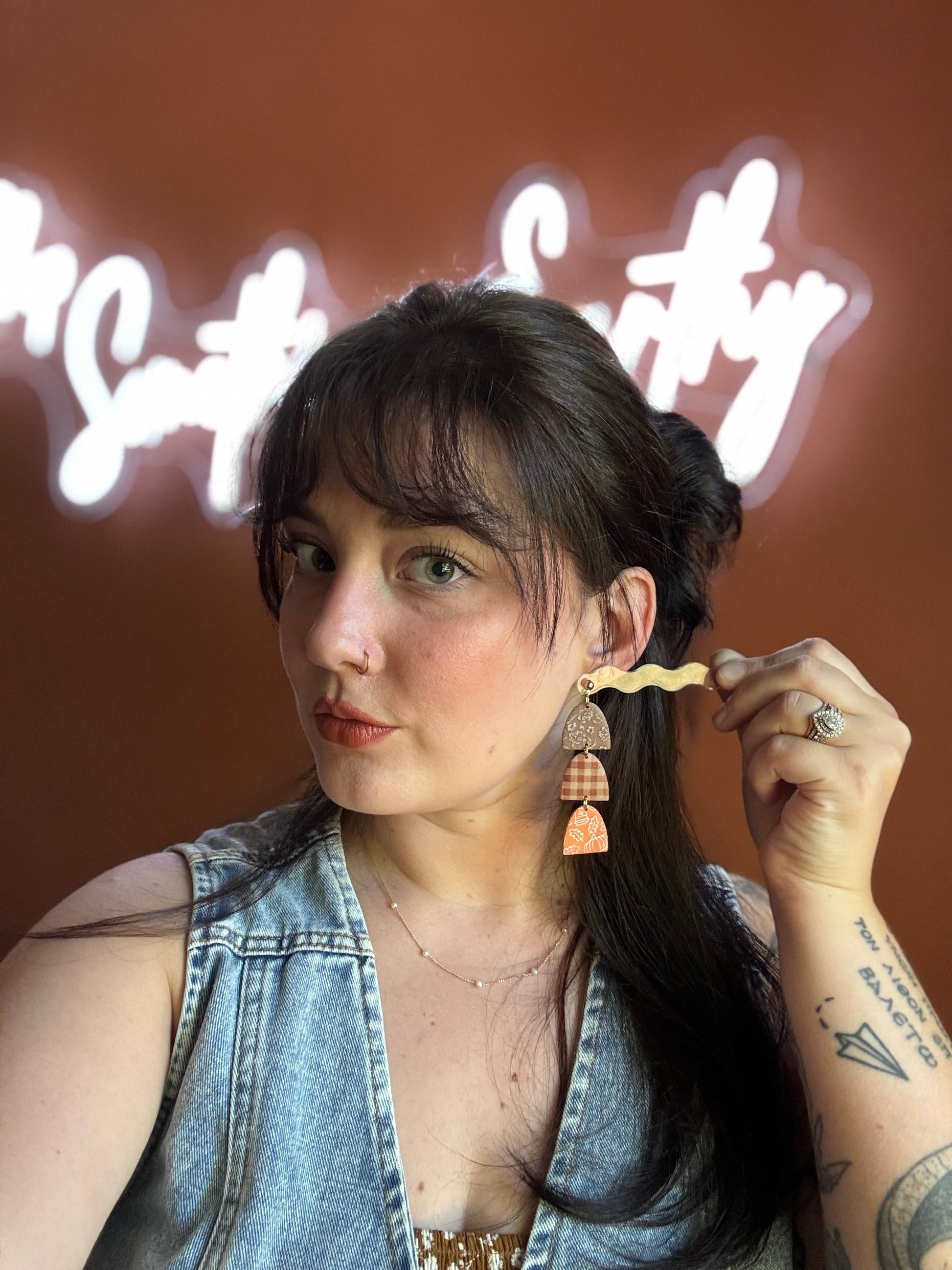 Earrings are made of polymer clay and hardware is 14k gold plated - nickel free. Each piece is rolled, cut, baked, sanded and assembled by hand, so sizes and custom-mixed colors will vary per piece. Due to the handmade nature of my pieces, slight imperfections are inevitable. Every piece is truly one of a kind.