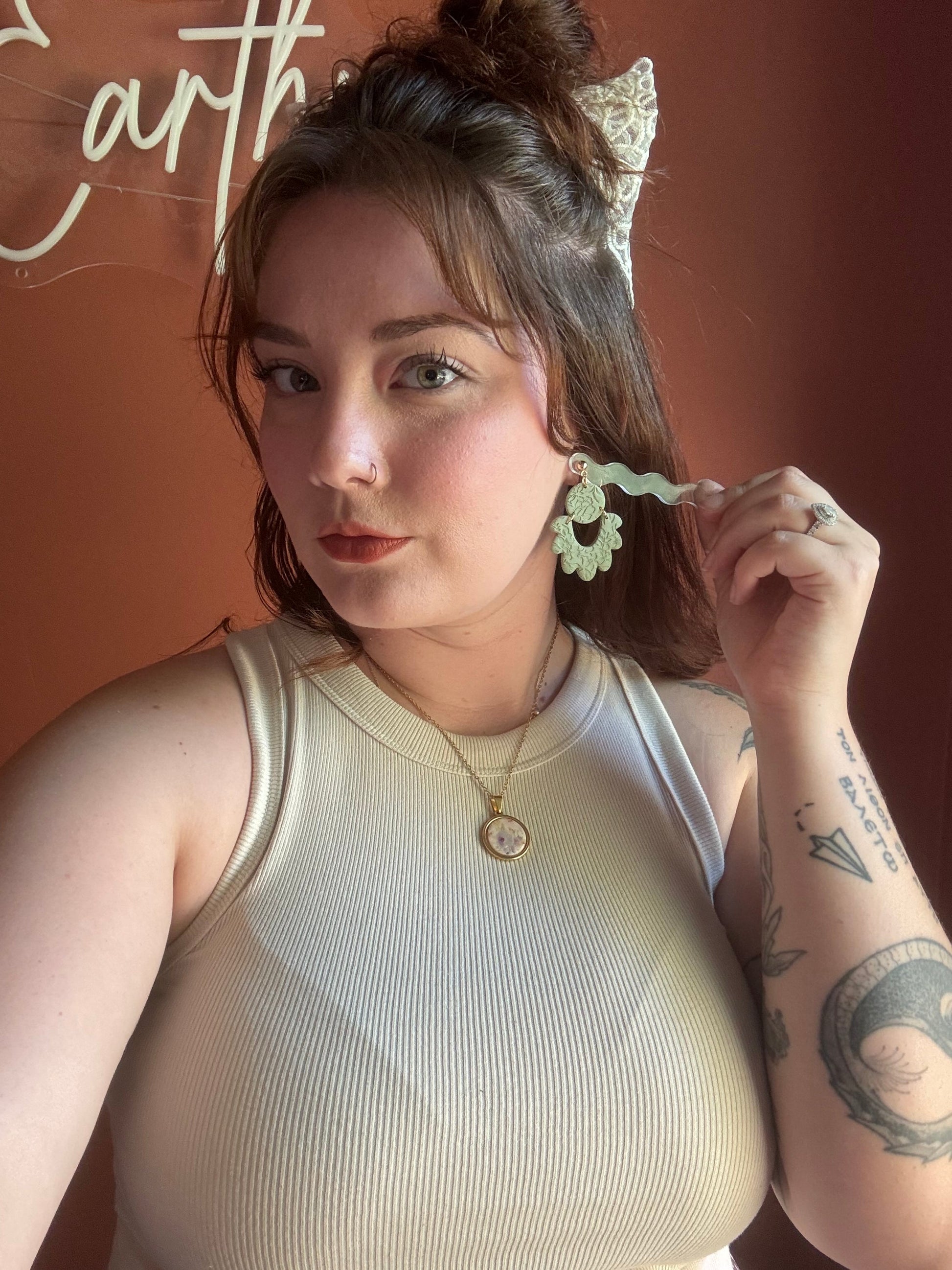 Earrings are made of polymer clay and hardware is 14k gold plated - nickel free. Each piece is rolled, cut, baked, sanded and assembled by hand, so sizes and custom-mixed colors will vary per piece. Due to the handmade nature of my pieces, slight imperfections are inevitable. Every piece is truly one of a kind.