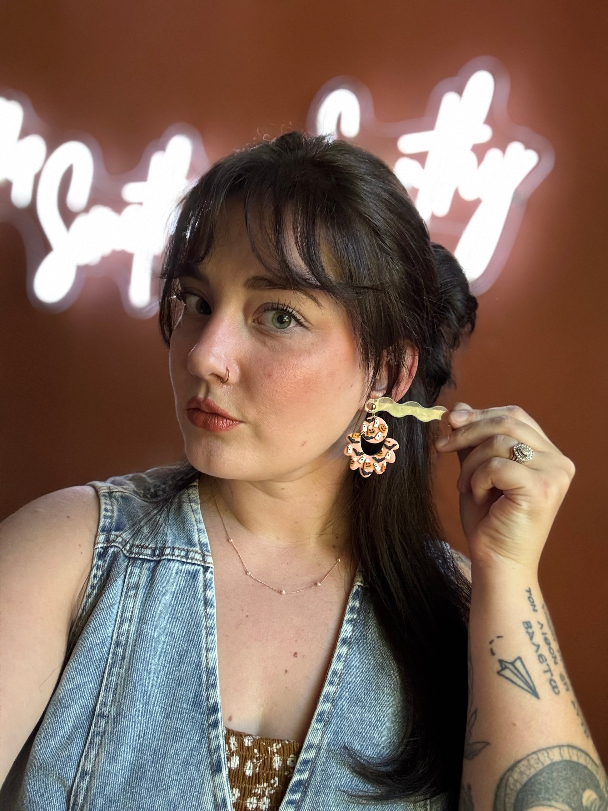 Earrings are made of polymer clay and hardware is 14k gold plated - nickel free. Each piece is rolled, cut, baked, sanded and assembled by hand, so sizes and custom-mixed colors will vary per piece. Due to the handmade nature of my pieces, slight imperfections are inevitable. Every piece is truly one of a kind.