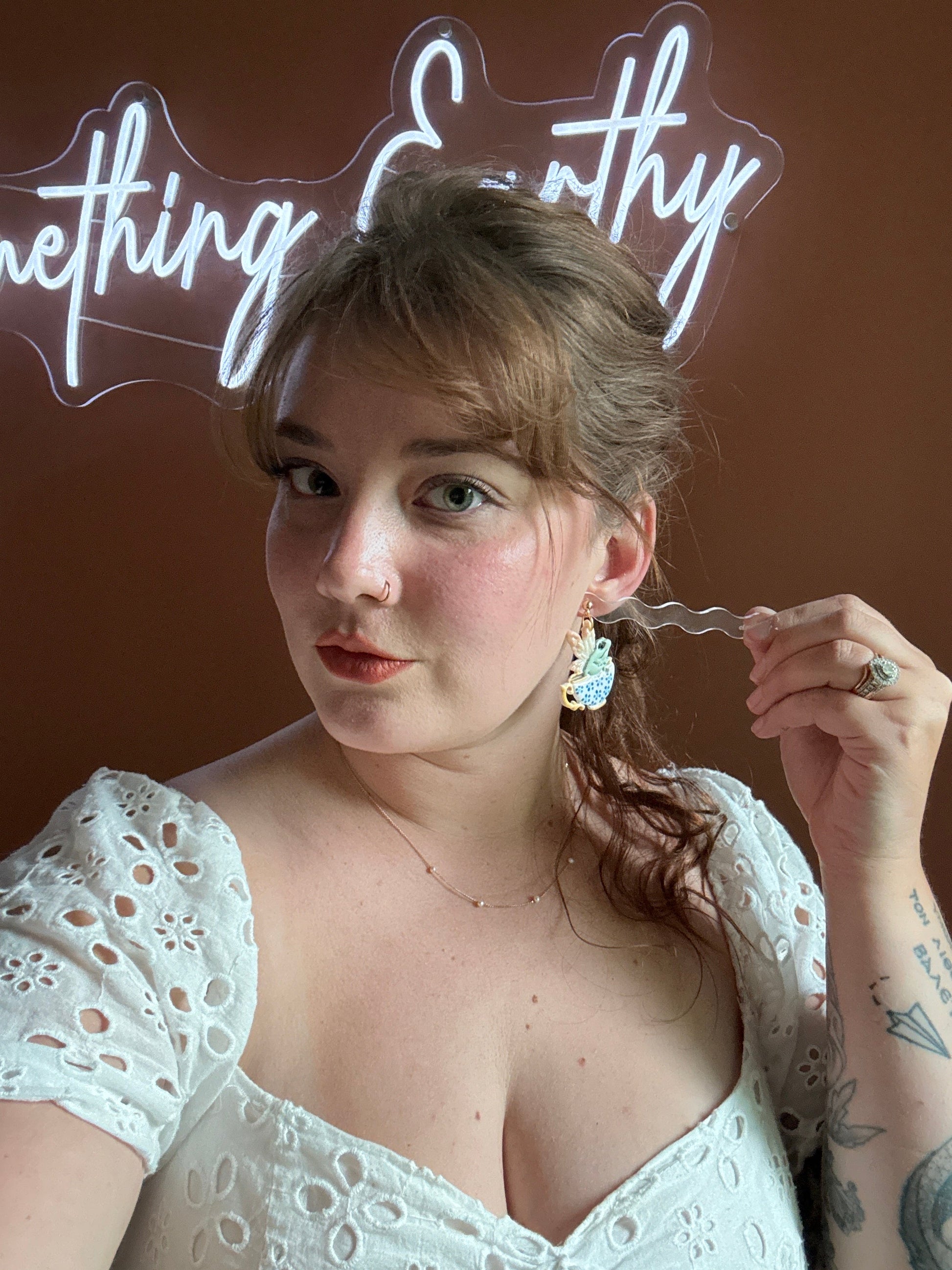 Earrings are made of polymer clay and hardware is 14k gold plated - nickel free. Each piece is rolled, cut, baked, sanded and assembled by hand, so sizes and custom-mixed colors will vary per piece. Due to the handmade nature of my pieces, slight imperfections are inevitable. Every piece is truly one of a kind.