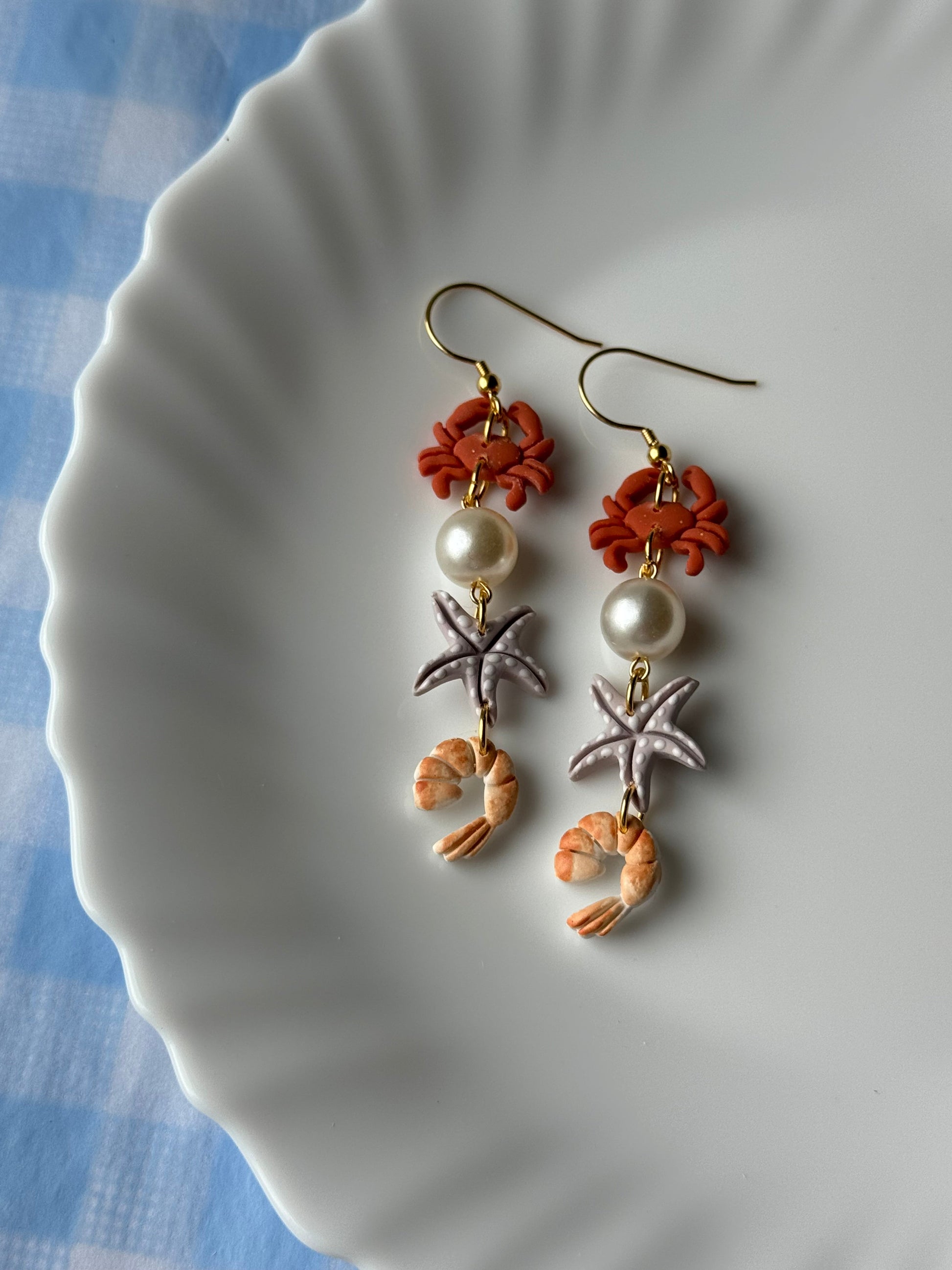 Earrings are made of polymer clay and hardware is 14k gold plated - nickel free. Each piece is rolled, cut, baked, sanded and assembled by hand, so sizes and custom-mixed colors will vary per piece. Due to the handmade nature of my pieces, slight imperfections are inevitable. Every piece is truly one of a kind.