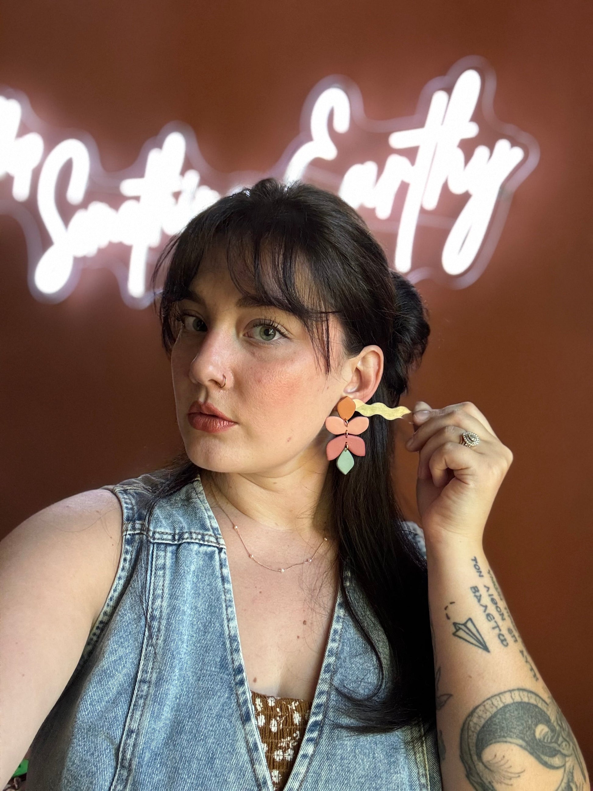 Earrings are made of polymer clay and hardware is surgical grade steel - nickel free. Each piece is rolled, cut, baked, sanded and assembled by hand, so sizes and custom-mixed colors will vary per piece. Due to the handmade nature of my pieces, slight imperfections are inevitable. Every piece is truly one of a kind.