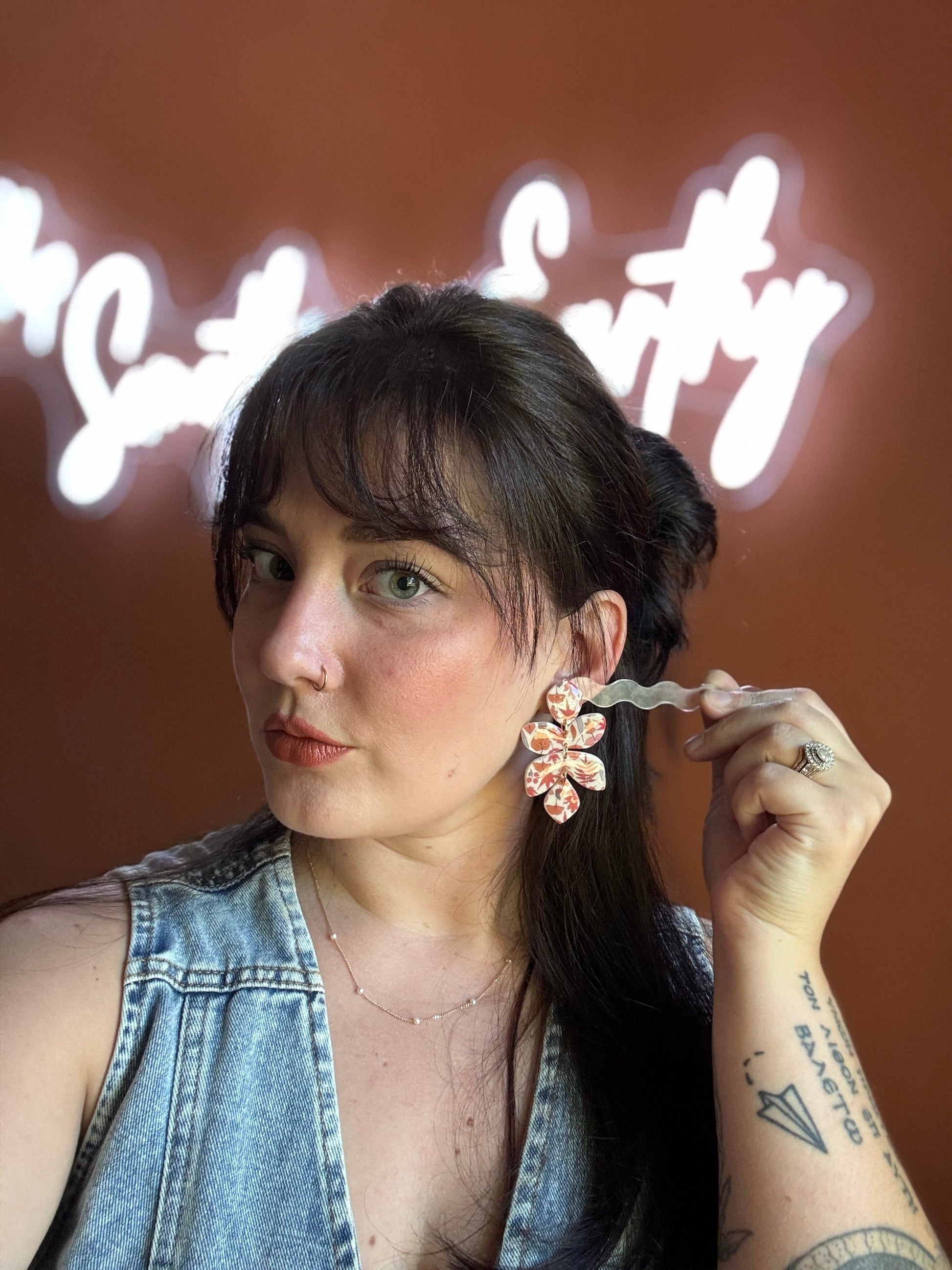 Earrings are made of polymer clay and hardware is 14k gold plated - nickel free. Each piece is rolled, cut, baked, sanded and assembled by hand, so sizes and custom-mixed colors will vary per piece. Due to the handmade nature of my pieces, slight imperfections are inevitable. Every piece is truly one of a kind.
