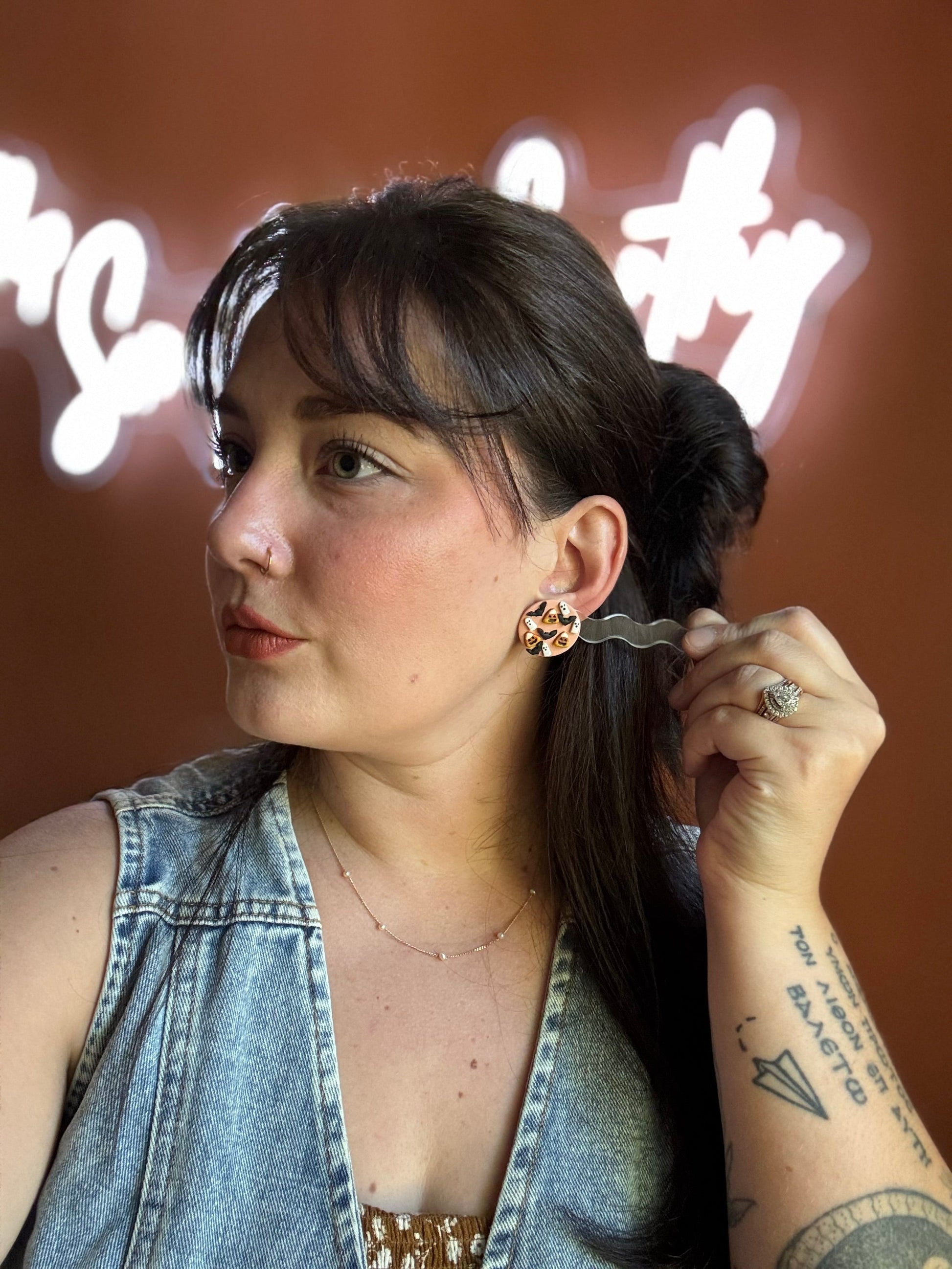 Earrings are made of polymer clay and hardware is surgical grade steel - nickel free. Each piece is rolled, cut, baked, sanded and assembled by hand, so sizes and custom-mixed colors will vary per piece. Due to the handmade nature of my pieces, slight imperfections are inevitable. Every piece is truly one of a kind.