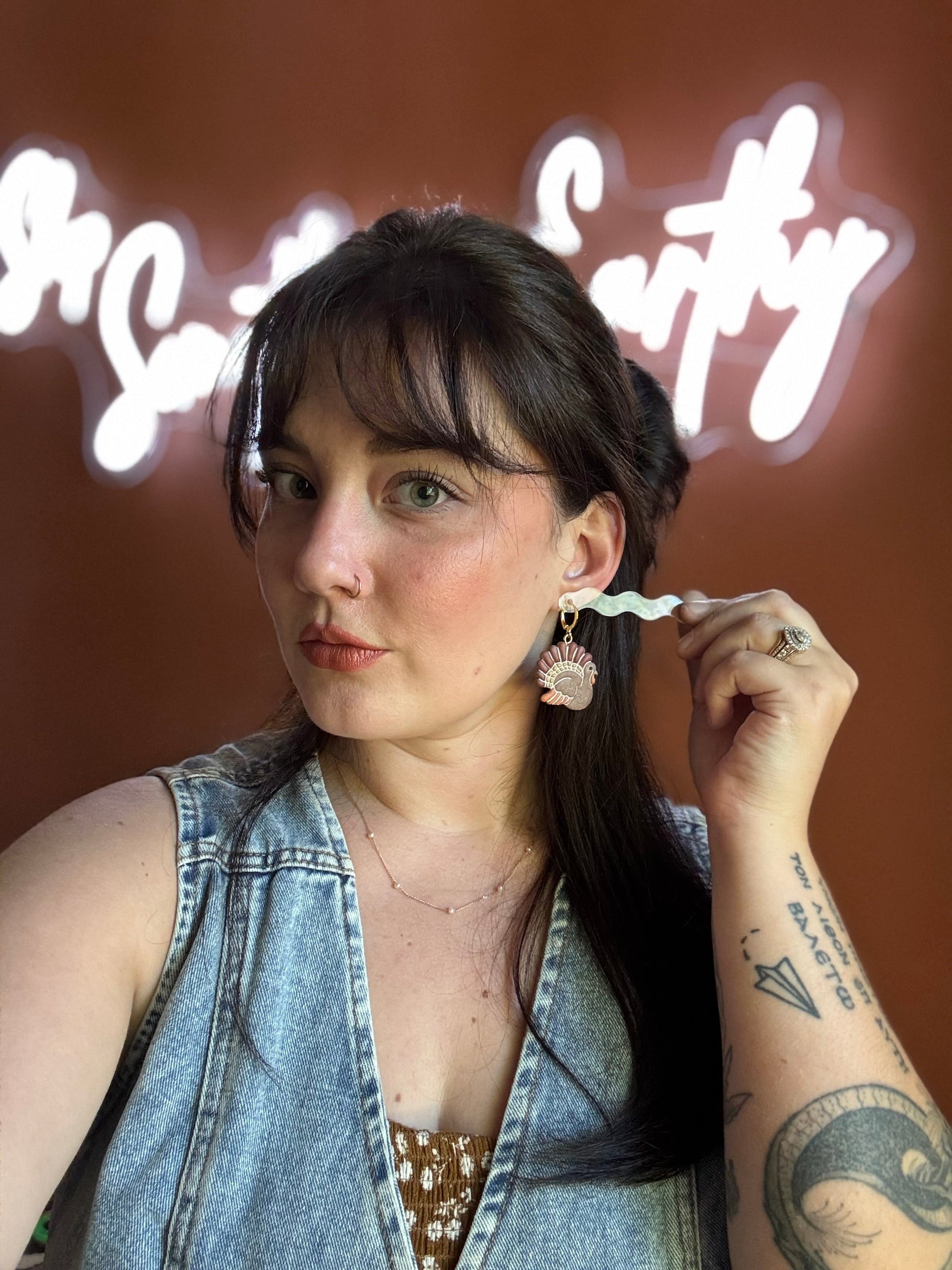 Earrings are made of polymer clay and hardware is 14k gold plated - nickel free. Each piece is rolled, cut, baked, sanded and assembled by hand, so sizes and custom-mixed colors will vary per piece. Due to the handmade nature of my pieces, slight imperfections are inevitable. Every piece is truly one of a kind.
