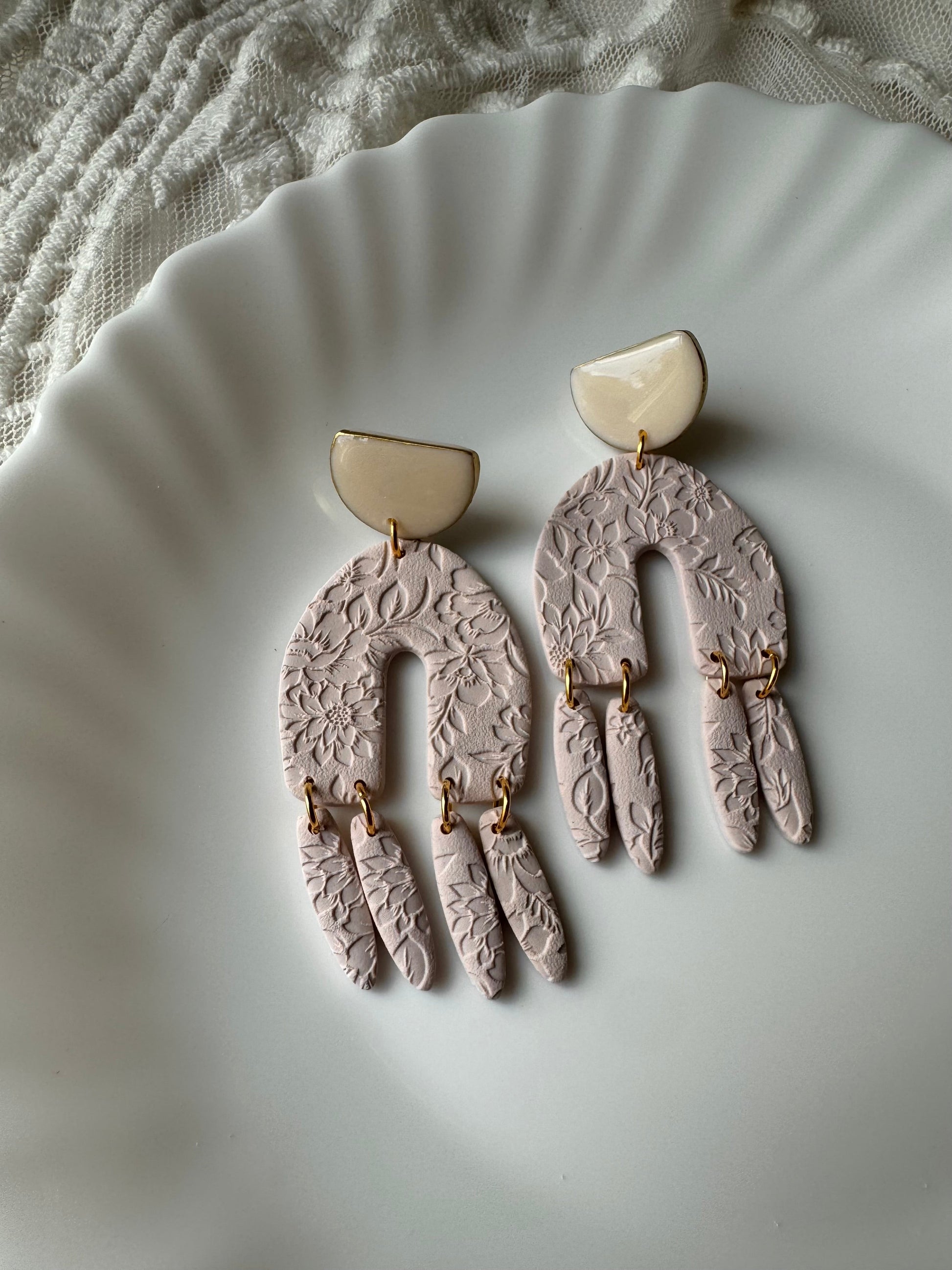 Earrings are made of polymer clay and hardware is surgical grade steel - nickel free. Each piece is rolled, cut, baked, sanded and assembled by hand, so sizes and custom-mixed colors will vary per piece. Due to the handmade nature of my pieces, slight imperfections are inevitable. Every piece is truly one of a kind.