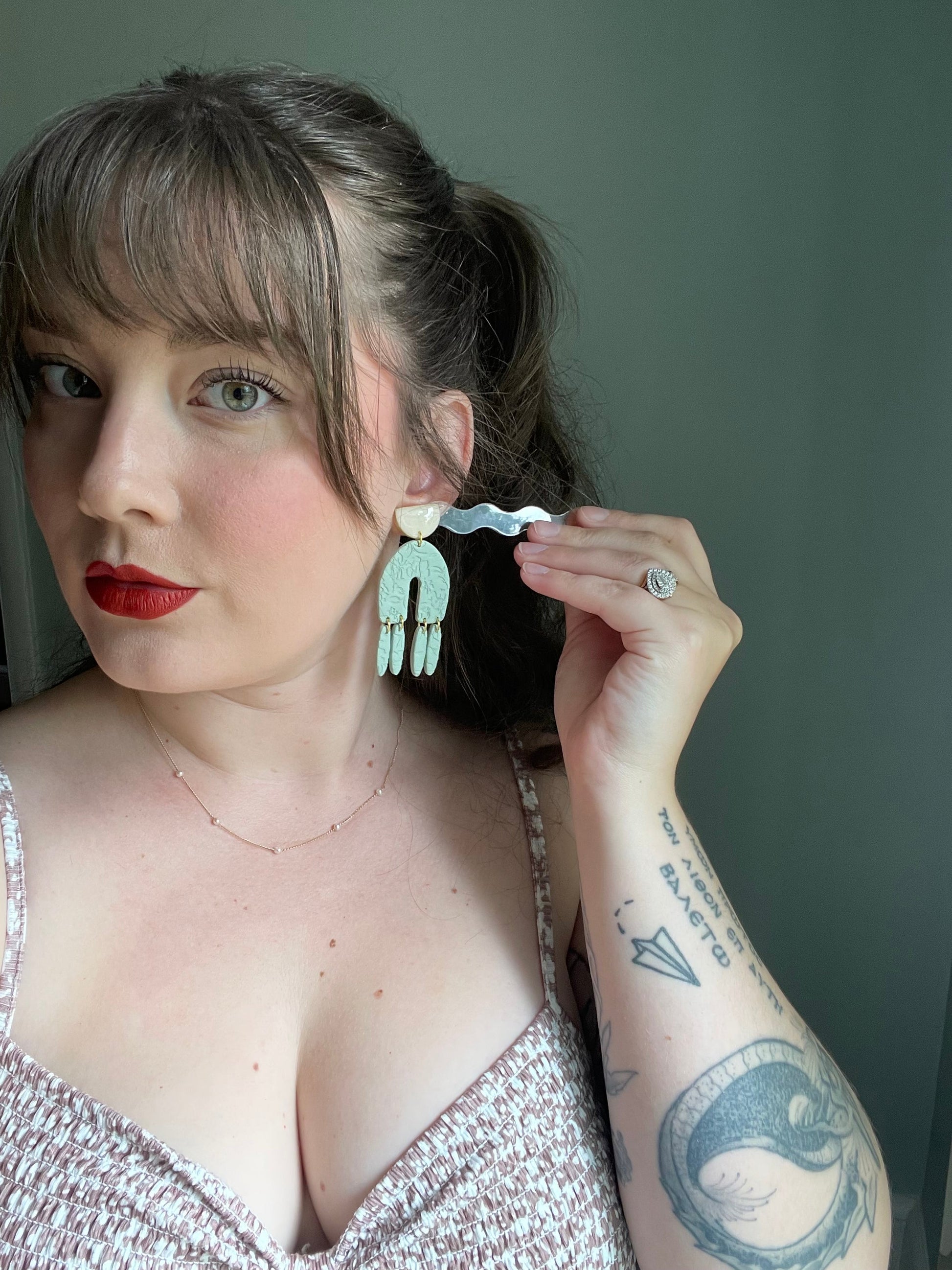Earrings are made of polymer clay and hardware is surgical grade steel - nickel free. Each piece is rolled, cut, baked, sanded and assembled by hand, so sizes and custom-mixed colors will vary per piece. Due to the handmade nature of my pieces, slight imperfections are inevitable. Every piece is truly one of a kind.