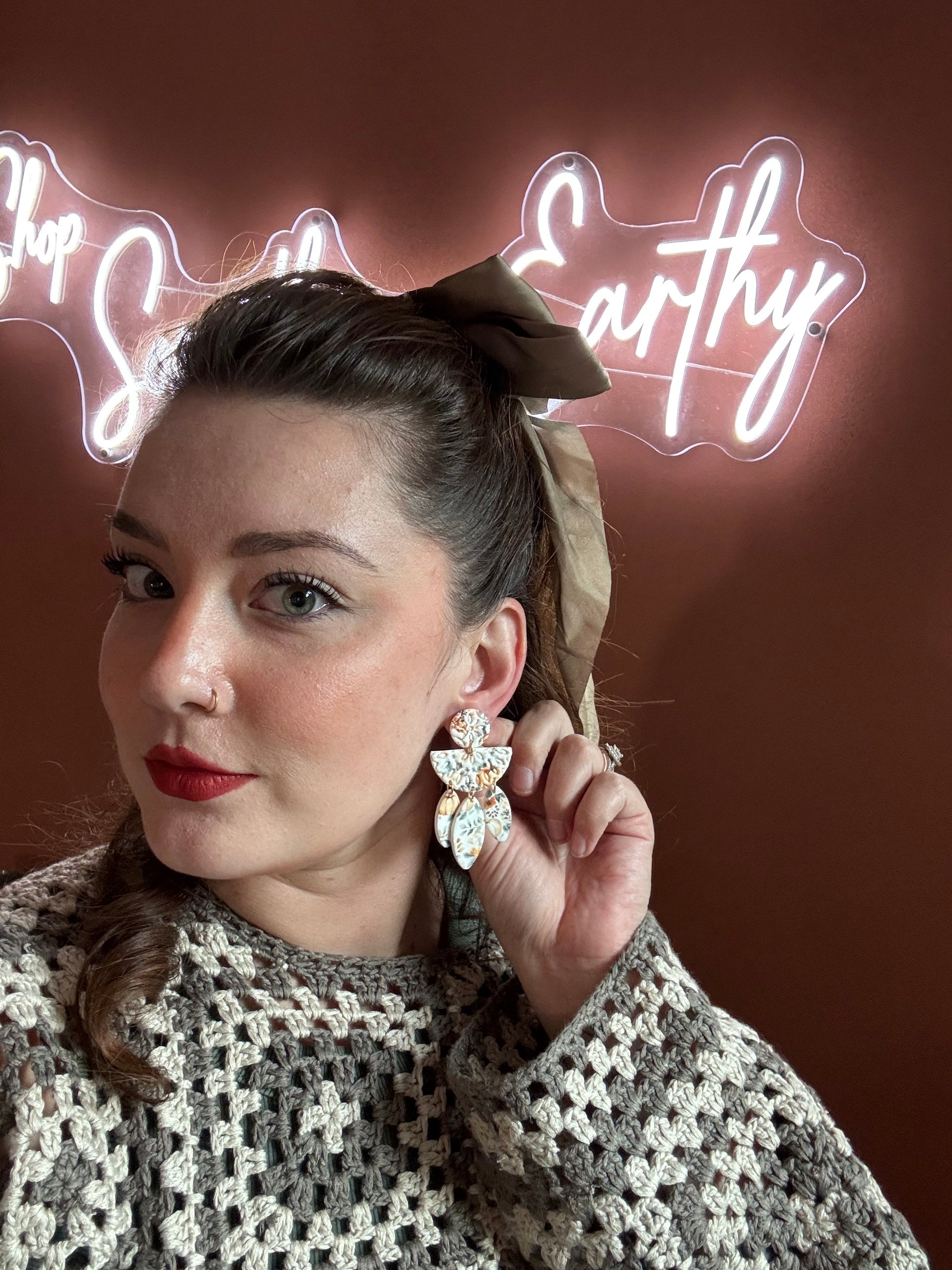 Earrings are made of polymer clay and hardware is surgical grade steel - nickel free. Each piece is rolled, cut, baked, sanded and assembled by hand, so sizes and custom-mixed colors will vary per piece. Due to the handmade nature of my pieces, slight imperfections are inevitable. Every piece is truly one of a kind.